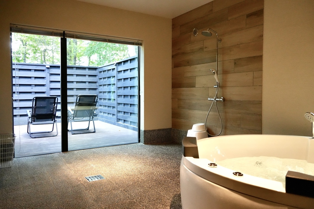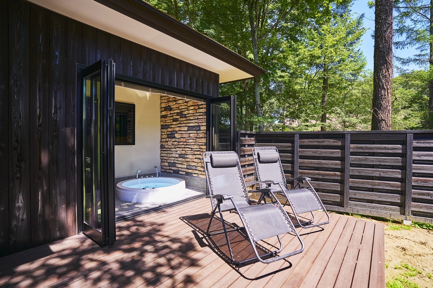 セミダブルベッド2台の寝室×2部屋・キッチン・リビング・サウナ・ジャグジーバス(水風呂)・ウッドデッキのある一棟貸切コテージ。お食事がついていない素泊まりプランです。長野県佐久市の自然や星空に囲まれながら、BBQ・サウナ・水風呂・ジャグジーで極上の体験を提供します。シャワーヘッド、ドライヤー、シャンプー、トリートメントはReFa製を使用しております。簡易的なキッチンがあり、電子レンジ・トースター・湯沸かしポットなどの家電製品も設置。食器やグラスなどもご用意ございます。5歳以下のお子様は2名まで無料です。※持ち込み食材でBBQを利用する場合は、予約時備考欄にご記入いただき、チェックイン時【BBQガスコンロ3300円】をお支払いいただきます。<食事オプションについて>夕食や朝食のセットもご用意しております。ご希望の方は、予約時のオプション選択から希望メニューをご追加ください。※事前予約制です※人数分のご予約が必要ですBBQセット:1人前 5610円∟肉・野菜・サラダ・カレーがセットになった夕食です。ご飯は炊飯器の中にご用意がございます。BBQ機材も完備しております。焼肉セット:1人前 5610円∟タンなどのお肉盛り合わせ・野菜・サラダ・カレーがセットになった夕食です。ご飯は炊飯器の中にご用意がございます。BBQ機材も完備しております。信州しゃぶしゃぶセット:1人前 4400円∟信州産の肉・野菜盛り合わせ・おつまみ2品がセットになった夕食です。ホットサンド・サラダセット;1人前 1100円∟ハムとチーズのホットサンド・サラダがセットになった朝食です。コテージ内のホットサンドメーカーで、お客様自身でお作りいただきます。<チェックイン・アウトについて>隣接ゴルフ場「サニーカントリークラブ」カウンターにて行い、鍵を受け渡します。