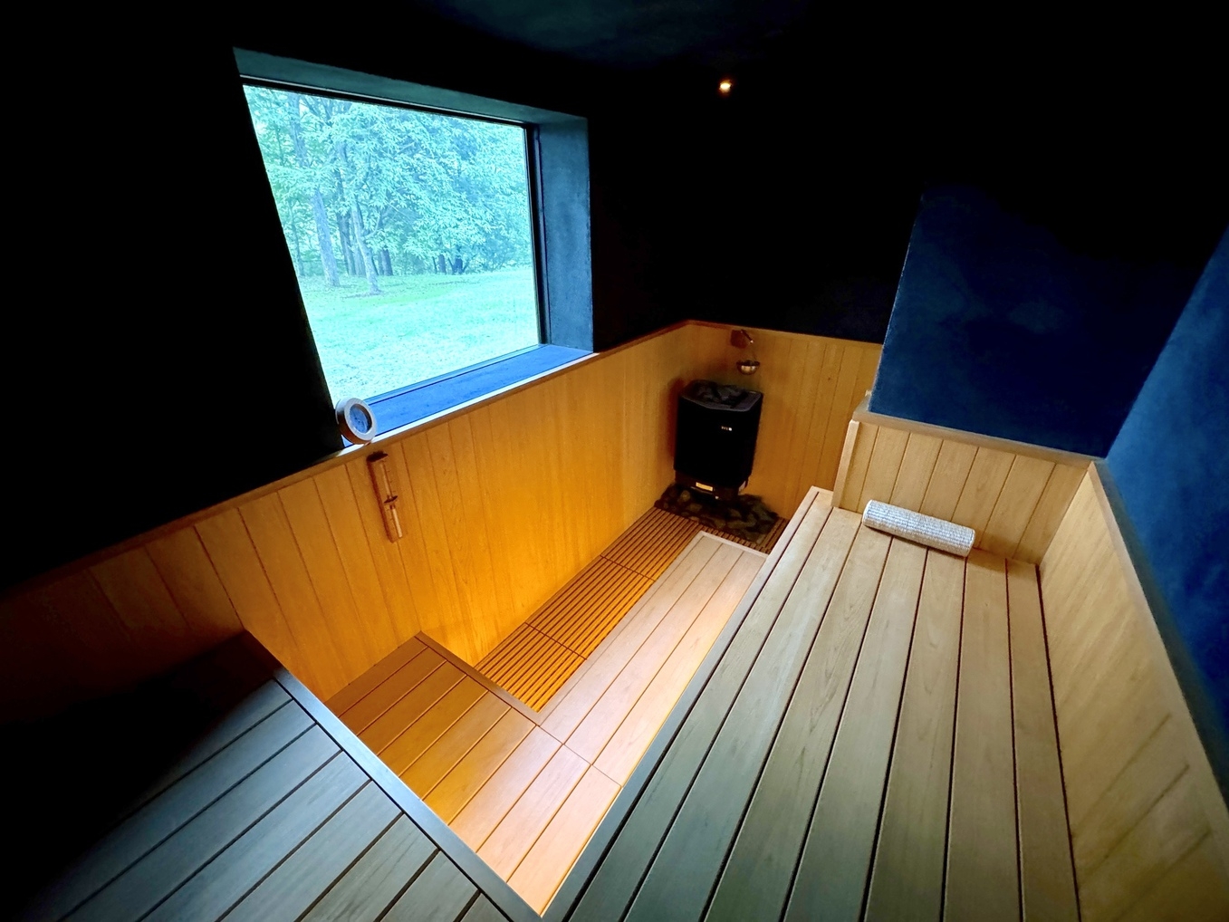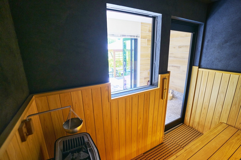 セミダブルベッド2台の寝室×2部屋・キッチン・リビング・サウナ・ジャグジーバス・ウッドデッキ・BBQガスコンロ(有料)