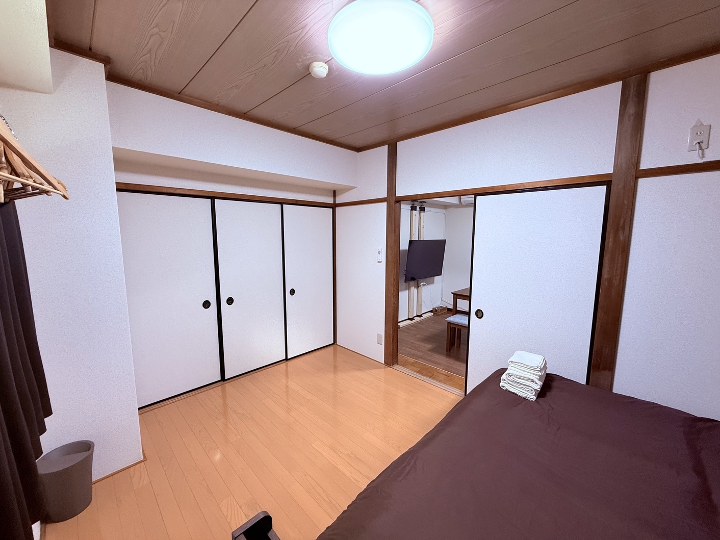 1DK 約30平米 ダブルベッド1台、追加敷布団セット 50インチテレビ、冷蔵庫、洗濯機、ウォシュレット、オーブンレンジ、コーヒーメ