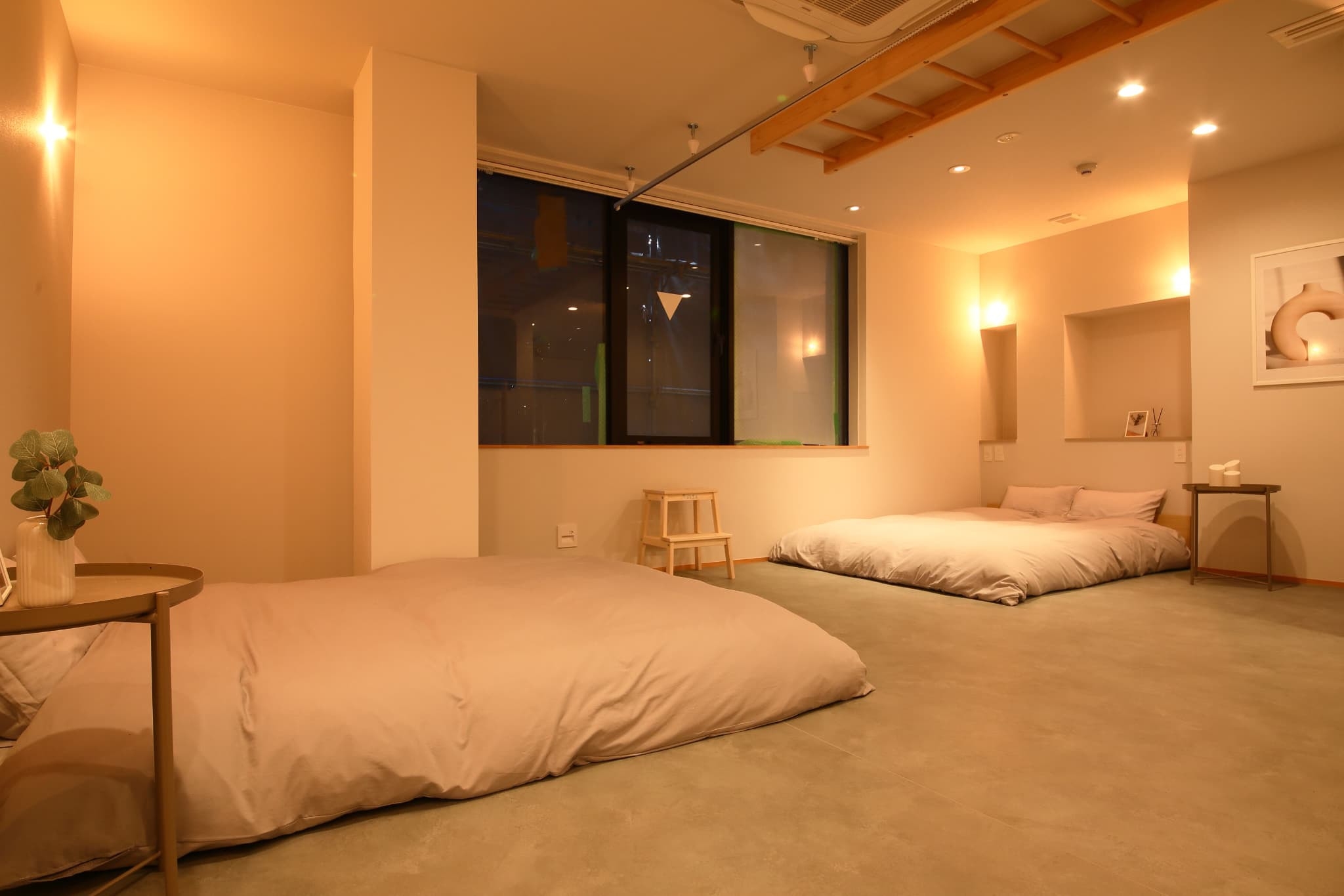 BROOM STAY UMEDA WESTへようこそ。最寄りの塚本駅から徒歩わずか1分という便利な立地にあり、梅田駅や大阪駅へは1駅で4分です。また、新大阪駅までは2駅で新幹線へのアクセスも非常に便利です。お部屋は新築広々110㎡以上で、通常のホテルのお部屋の5倍以上。ご家族やグループ旅行にぴったりで、最大10名までご宿泊いただけます。寝室の中心にある4つのベッドに関してはカプセルホテルのような非日常を味わえるベッドの作りになっており、お子様はもちろんグループ旅行でみなさんでお楽しみいただけます。50平米の広々リビングでは、プロジェクターに小上がりの畳スペースで、みなさんが広々と団欒していただけます。さらに、本宿泊施設の魅力は貸切で利用できる高温サウナ。観光で疲れた体に本格サウナで汗を流し、バスタブ付きのバスルームでゆっくり疲れを癒してみませんか。心身ともにリフレッシュしていただけます。広々とした快適な空間で、特別なひとときをお過ごしください。----------------------お部屋はベッドルーム、リビングルーム、バスルームに分かれております。・ベッドルームダブルベッド×3台シングルベッド×4台寝室は分けられておりませんので小さなお子様と安心してご就寝いただけます。・リビングルームダイニングテーブル椅子、畳用丸クッションプロジェクター子供用おもちゃスペース【キッチン】3つ口コンロオーブンレンジ冷蔵庫/冷凍庫電気ケトルIHコンロフライパン鍋包丁/まな板食器類各種・バス/ランドリールーム洗濯機バスタブ付き浴室サウナ涼みどころ独立洗面台×2台【アメニティ】バスタオル×人数分フェイスタオル×人数分歯ブラシ×人数分