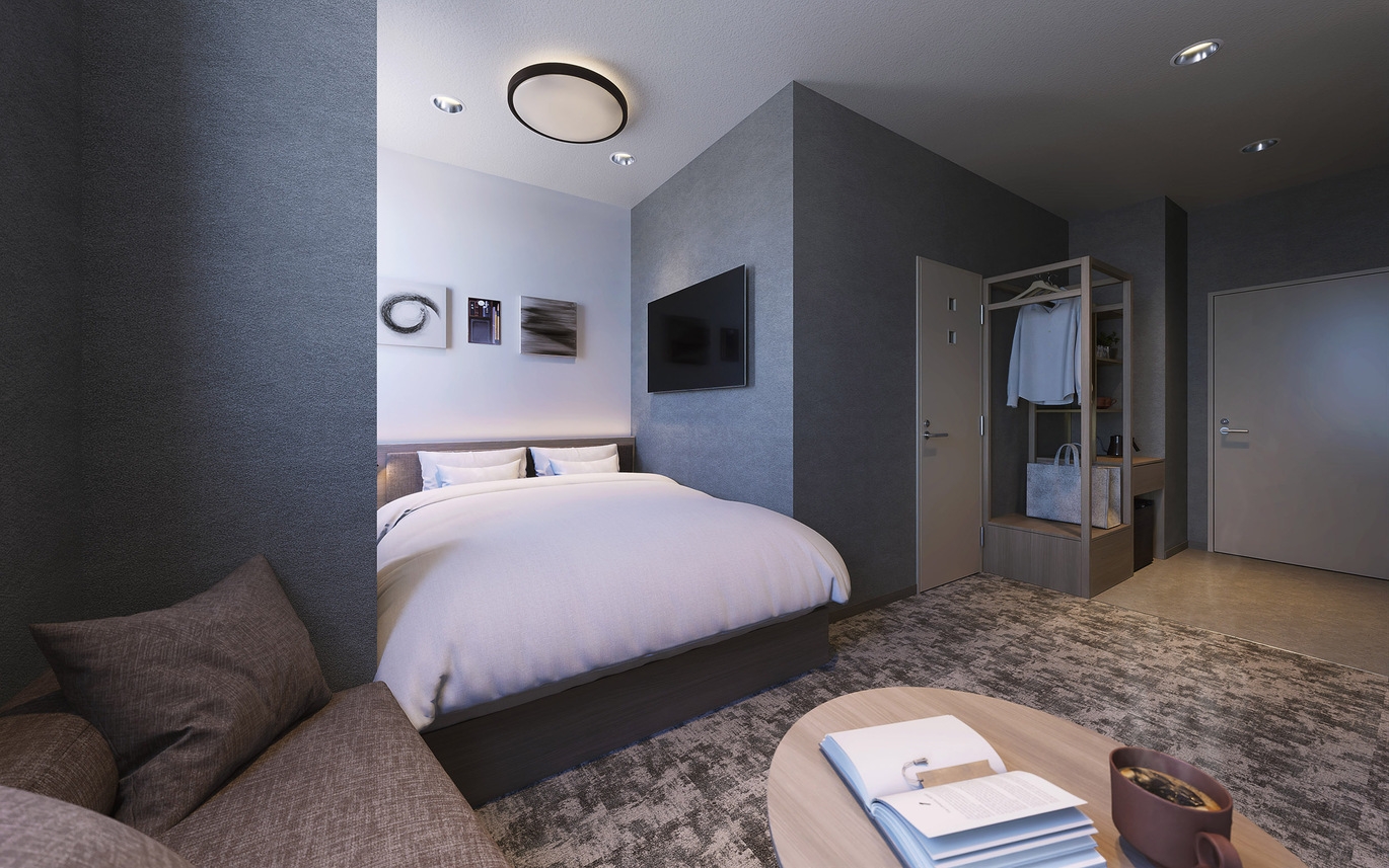 「やわらかな灯りと落ち着いた色調が心地よいスタンダードダブルルーム。 カップルのご滞在はもちろん、お一人でのゆったりステイにもぴったりの空間です。」