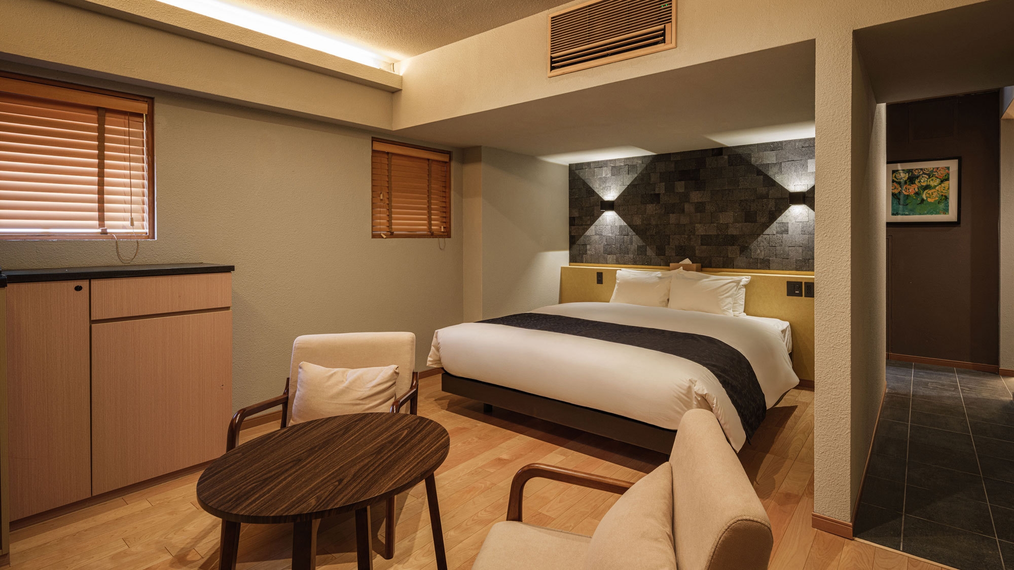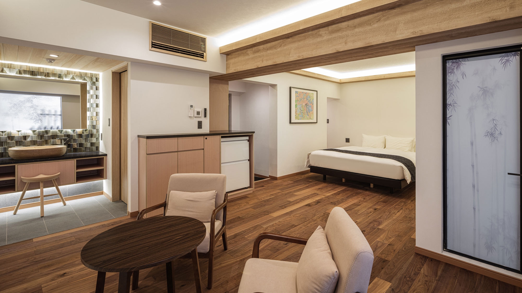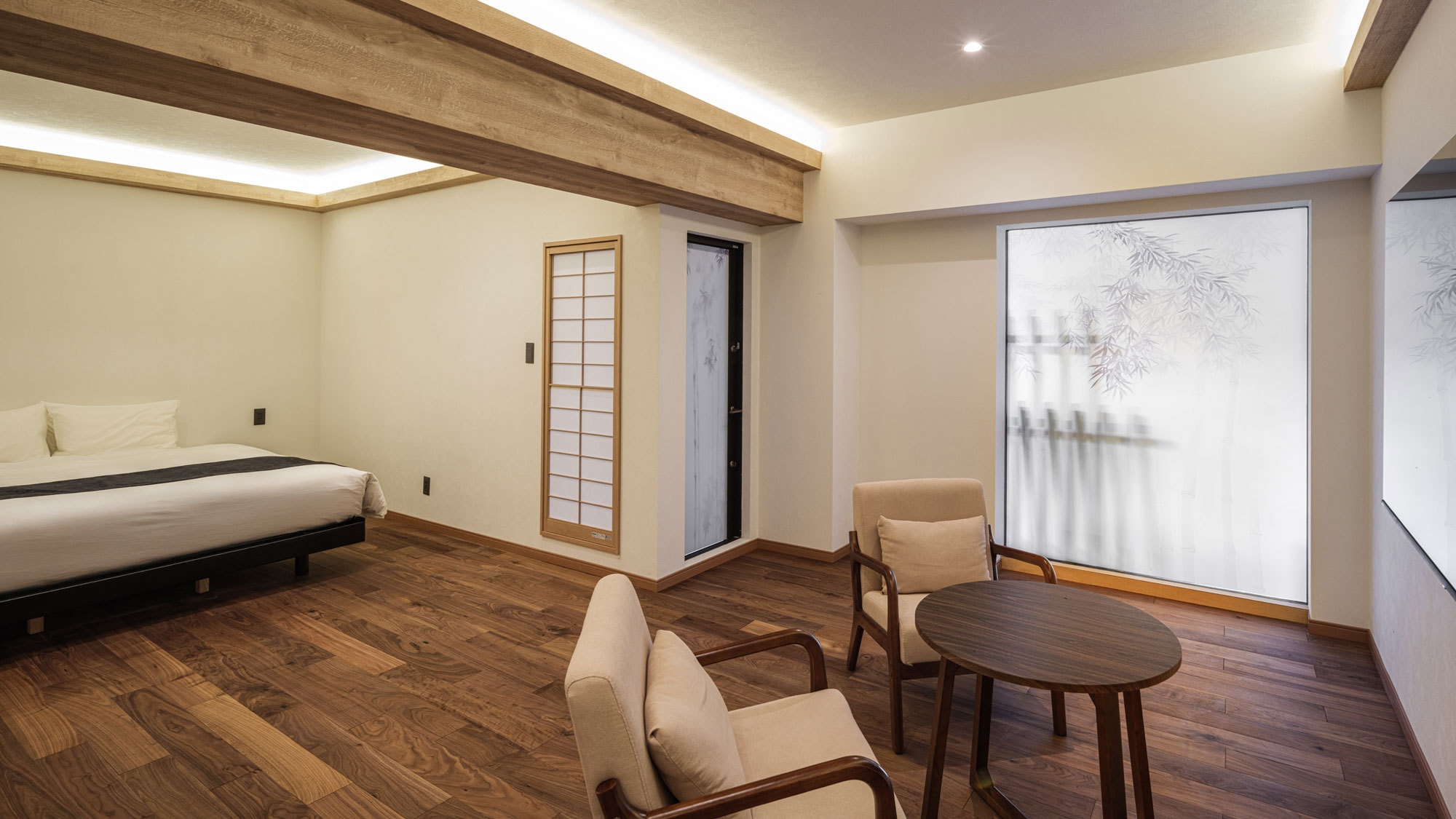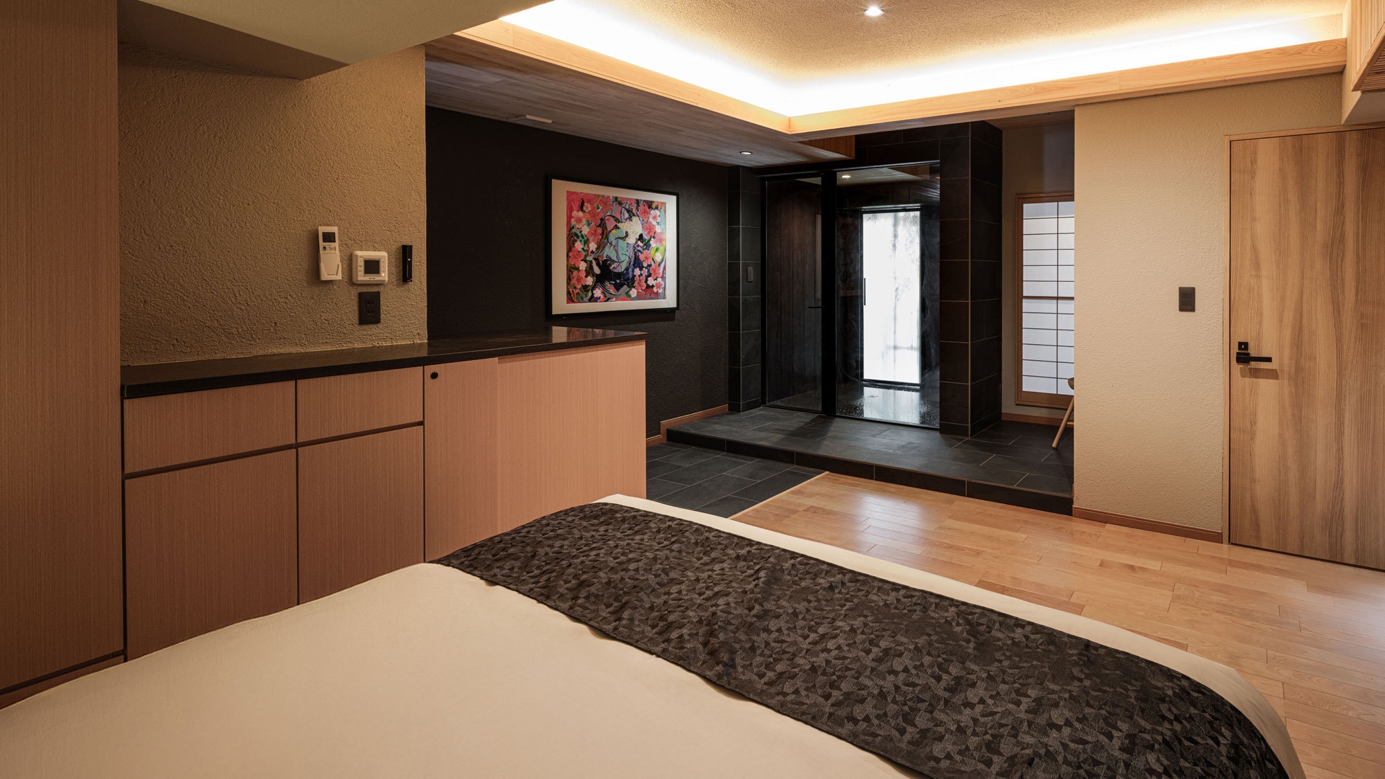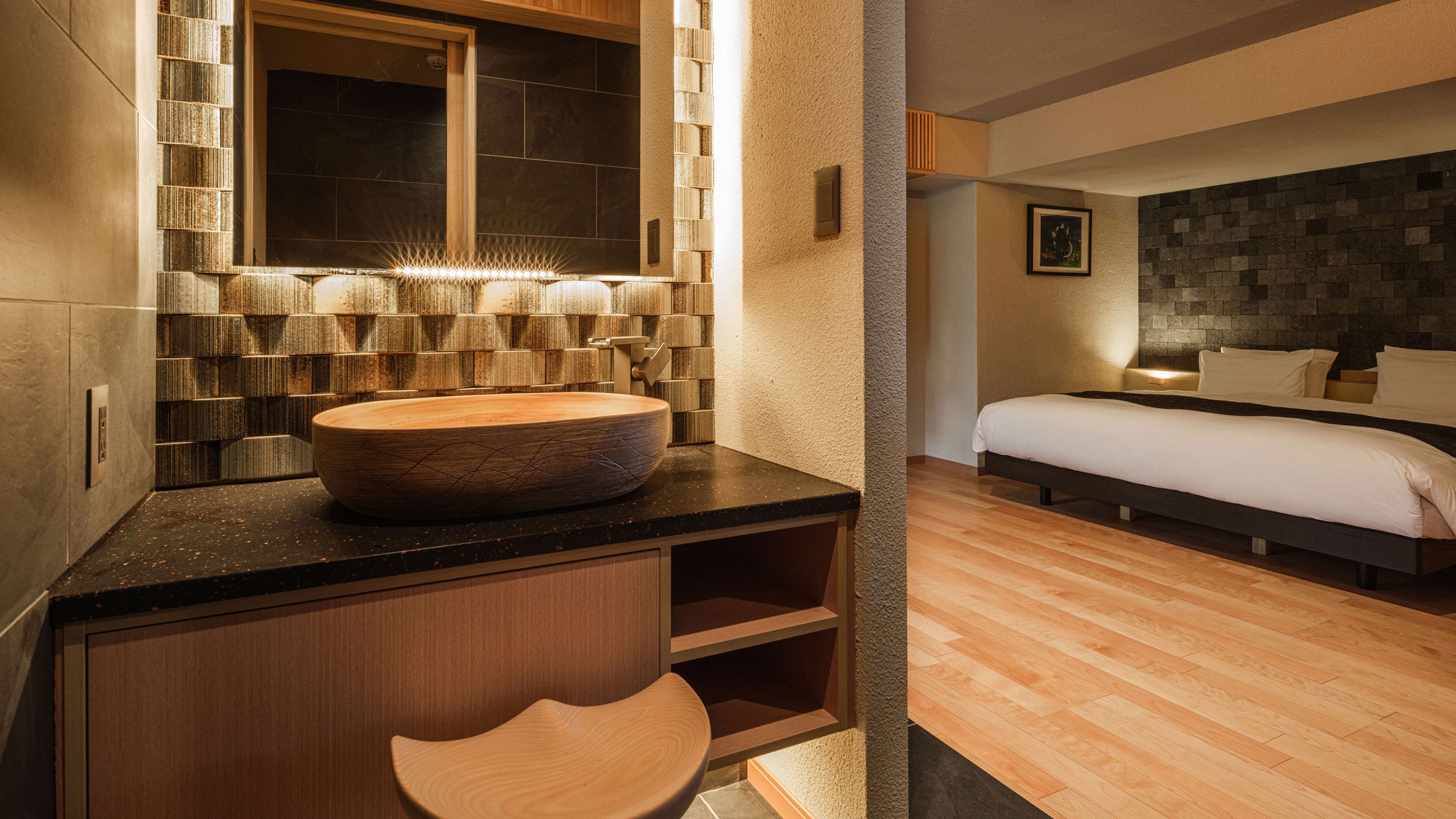 程よい広さで、工夫を凝らした設計が心地よいお部屋です。内風呂を備えているので、プライベートな空間で気兼ねなくおくつろぎいただけます