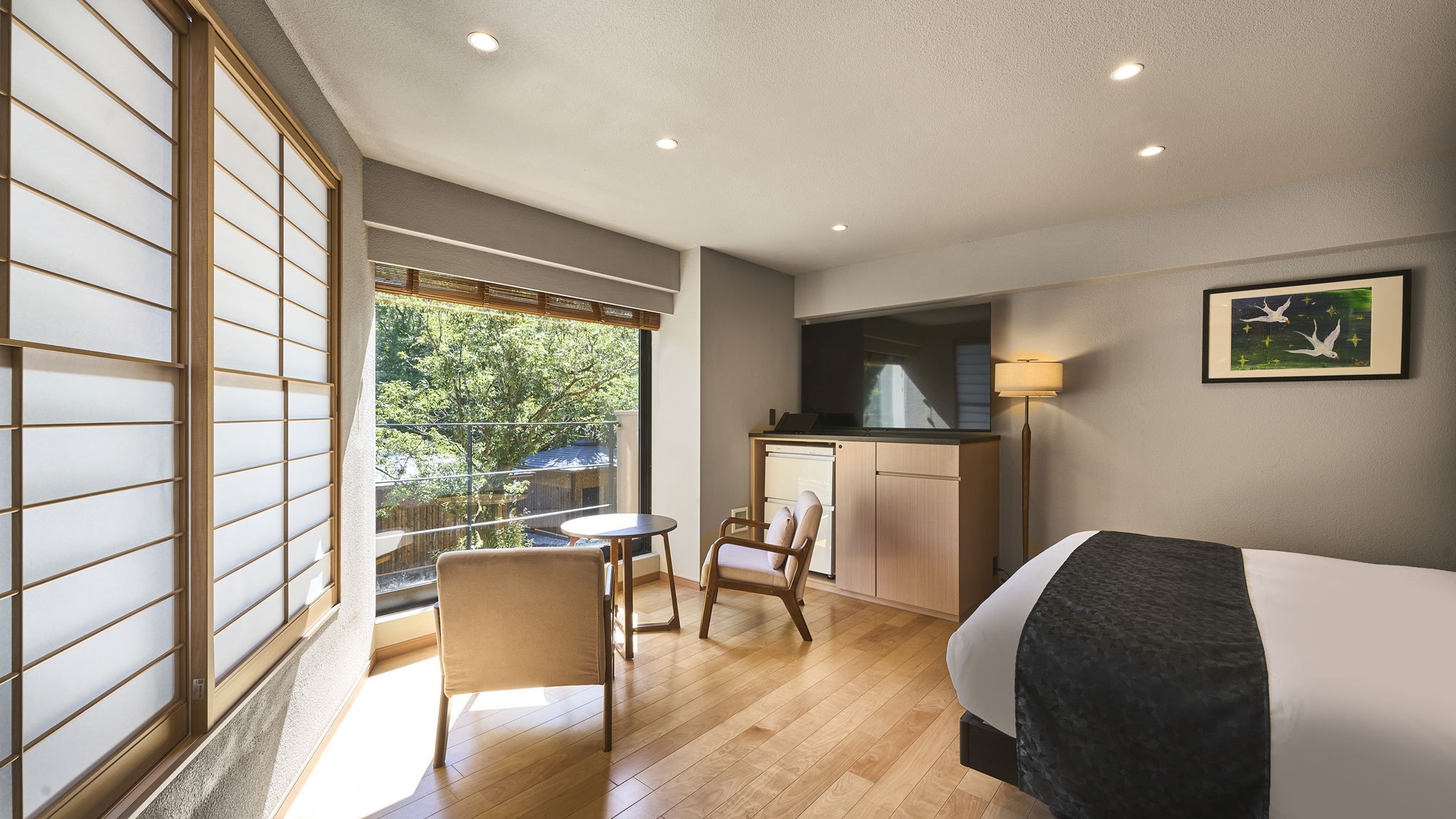 コンパクトながら露天風呂を備えた、使いやすいお部屋。シンプルで落ち着いた雰囲気で、温泉を気軽に楽しみたい方にもおすすめです