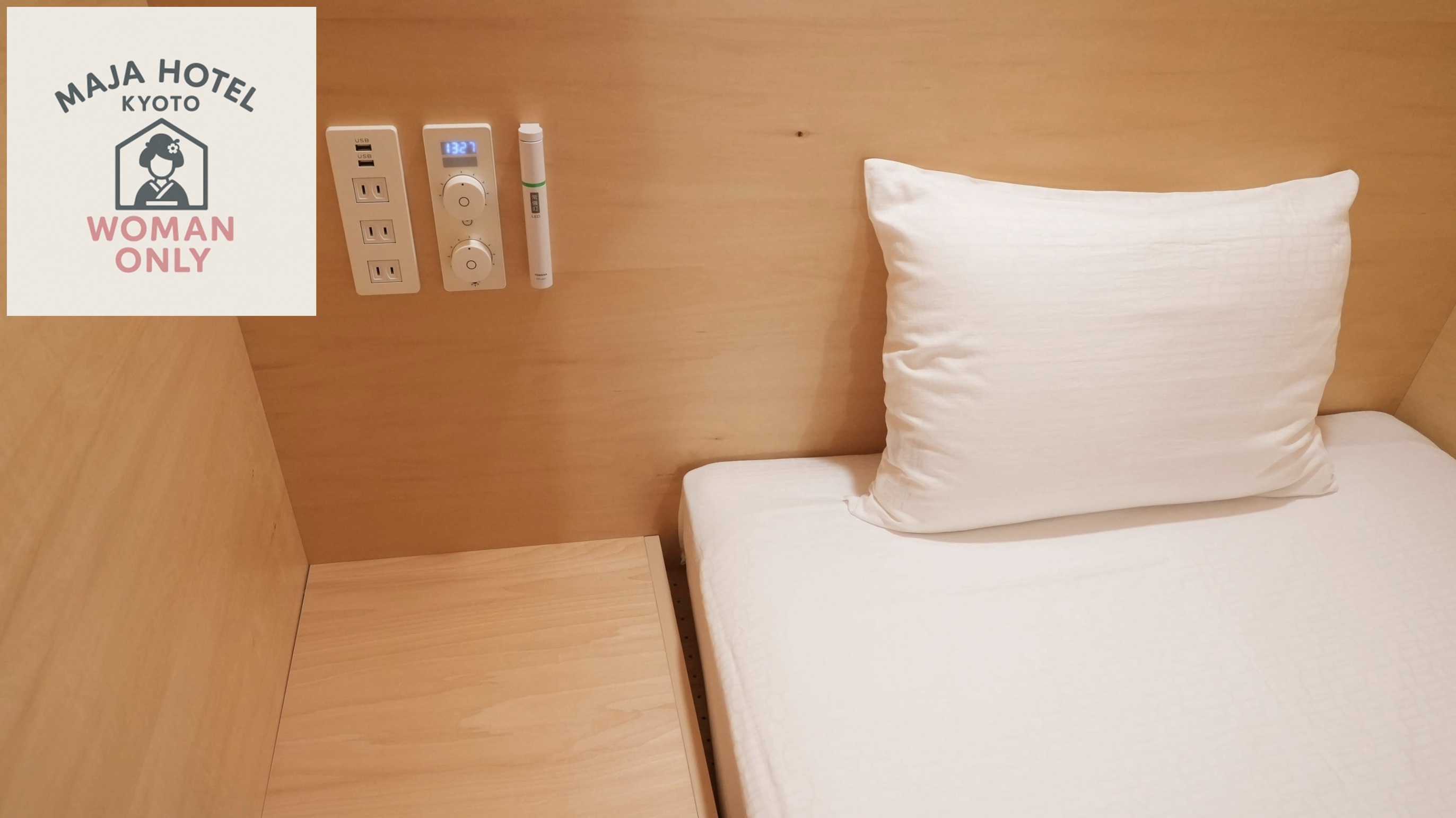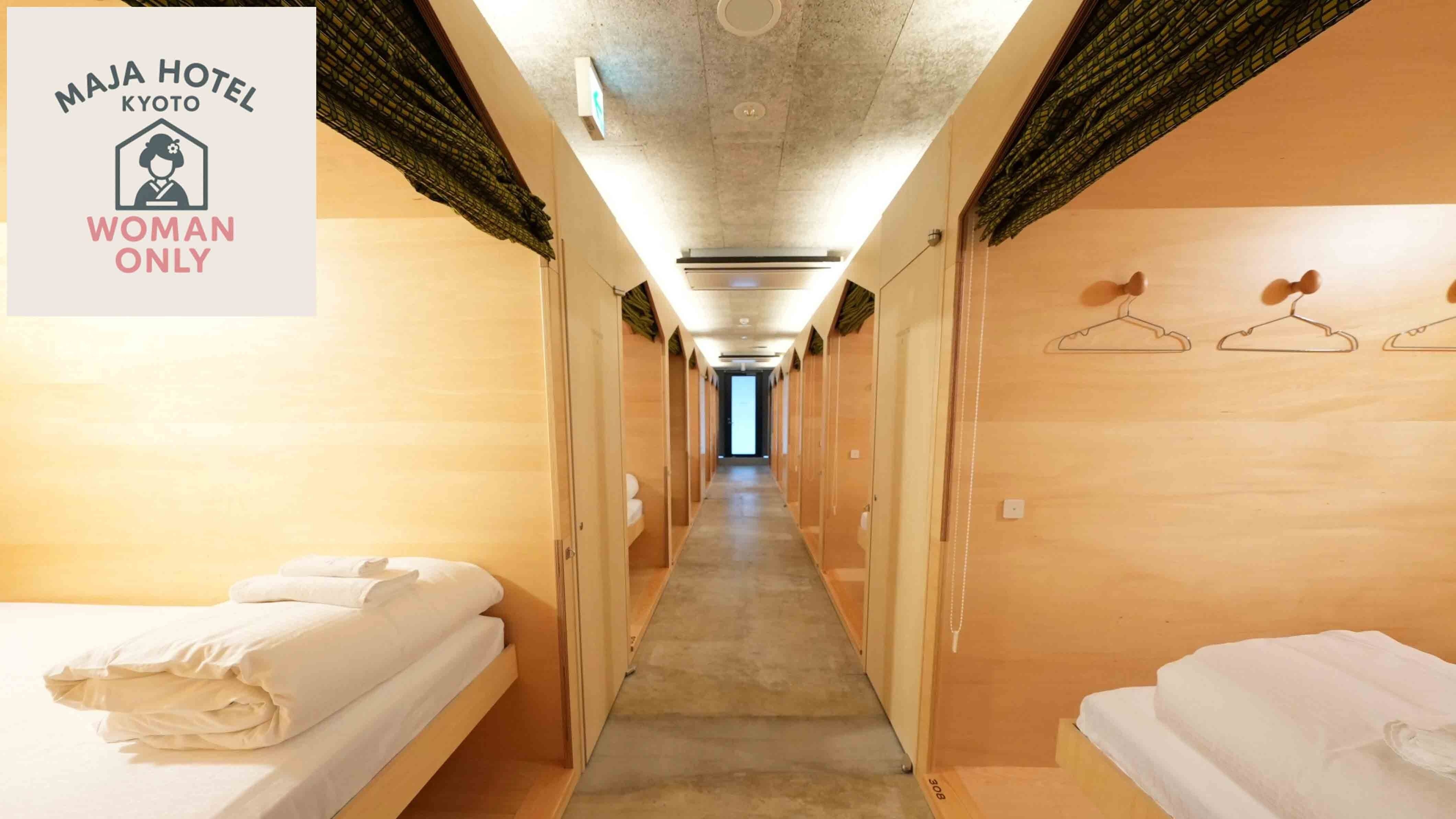 2025年10月 Renewal Open !!木の温もりを活かした落ち着きあるインテリアと、やわらかな灯りに包まれる《女性専用カプセルホテル》-------------------------------------------------------------------------------------新しい目覚めを、ご一緒にお祝いして頂ければと、プレ・オープン価格をご用意いたしました京都の街に佇む、《女性専用》の癒しの空間で、スタッフ一同ご来館をお待ちいたしております▲▽プラン内容▲▽宿泊のみの素泊まりプランチェックイン 15:00〜24:00 / チェックアウト 10:00▲▽施設・設備▲▽宿泊者専用のラウンジ、ロッカー、シャワールームをご用意しております■FREE WIFI■全室禁煙■宿泊者専用ラウンジ16席 湯沸かしポット、電子レンジ、冷蔵庫、食器類、ウォーターサーバー■専用ロッカー Sleep-in Hut:縦95cm×横40cm Walk-in Hut:縦44cm×横40cm■シャワールーム■全自動洗濯乾燥機 2台(有料)■アメニティ ・バスタオル&フェイスタオル、ルームスリッパ ・シャンプー、コンディショナー、ボディソープ ・歯ブラシ、耳栓、コットンセット▲▽注意事項▲▽・料金は空室状況により随時変動いたします(予約時の料金が適用)・チェックイン時間を過ぎてもご連絡をいただけない場合はキャンセル扱いとなる場合がございます・無断キャンセルはキャンセル料100%をご請求いたします・お客様のご都合によるチェックイン後のキャンセルにつきましてはご返金できかねます・当施設は簡易宿泊所となります カプセルベッドは施錠することが出来ませんが、ロールカーテンで仕切ることができます・【京都市宿泊税条例の施行について】 1人1泊あたり200円(宿泊料金2万円未満の場合)をチェックイン時にお支払頂きますようお願いいたします(現金のみ)【アクセス】地下鉄「烏丸御池駅」徒歩6分、「京都市役所前駅」徒歩6分阪急「烏丸駅」徒歩8分、京阪「三条駅」徒歩9分京都駅よりタクシー約12分