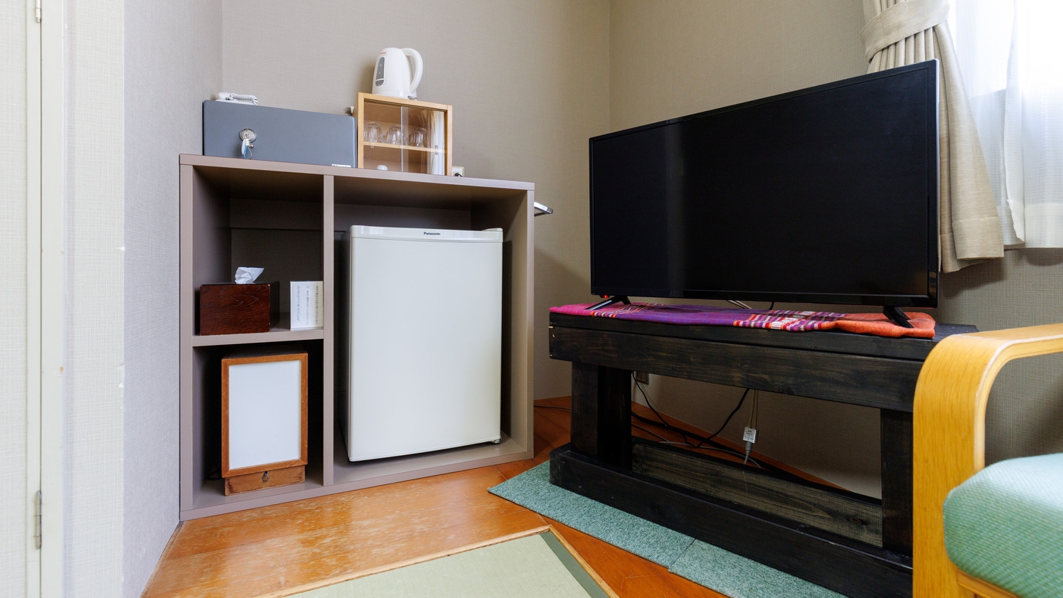 ・設備:テレビ/冷蔵庫/エアコン/金庫/電気ケトル/お茶セット