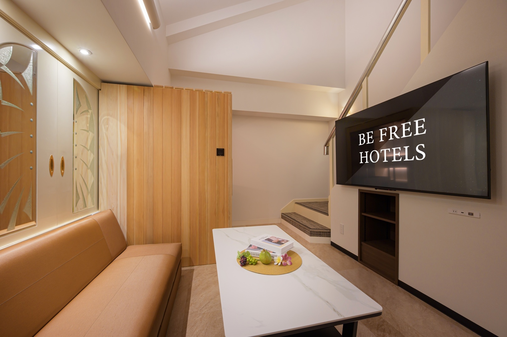 ベッドサイズ181cm/広さ27平米/マイクロバブルバス/ミラブルシャワー/2ドア冷凍冷蔵庫/無料WiFi/USB電源/65インチスマートテレビ