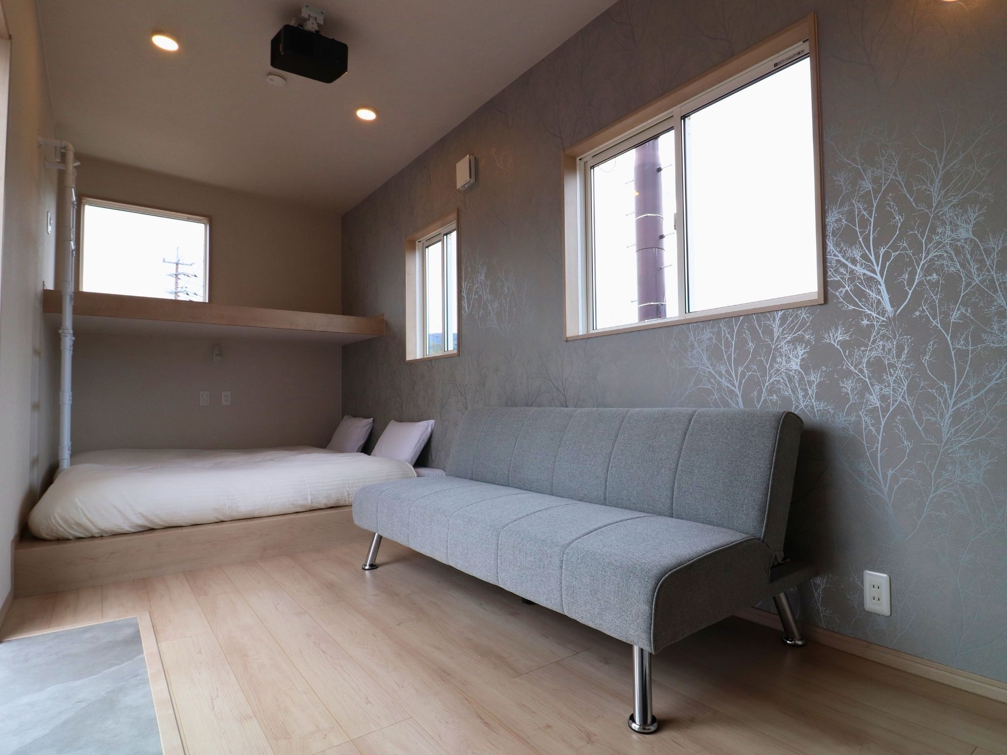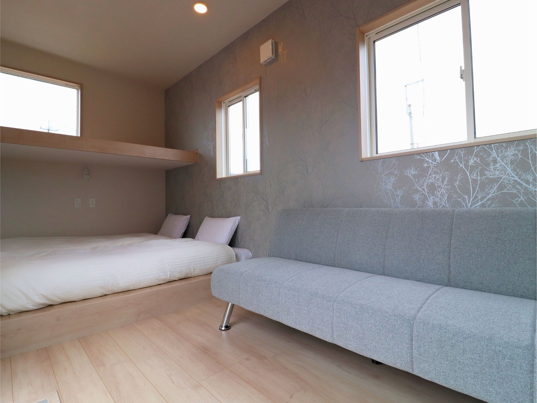 【BASE01−Forest】ウッドテイストで統一したスタンダードタイプのお部屋です。シングル3台、ソファベッド1台。