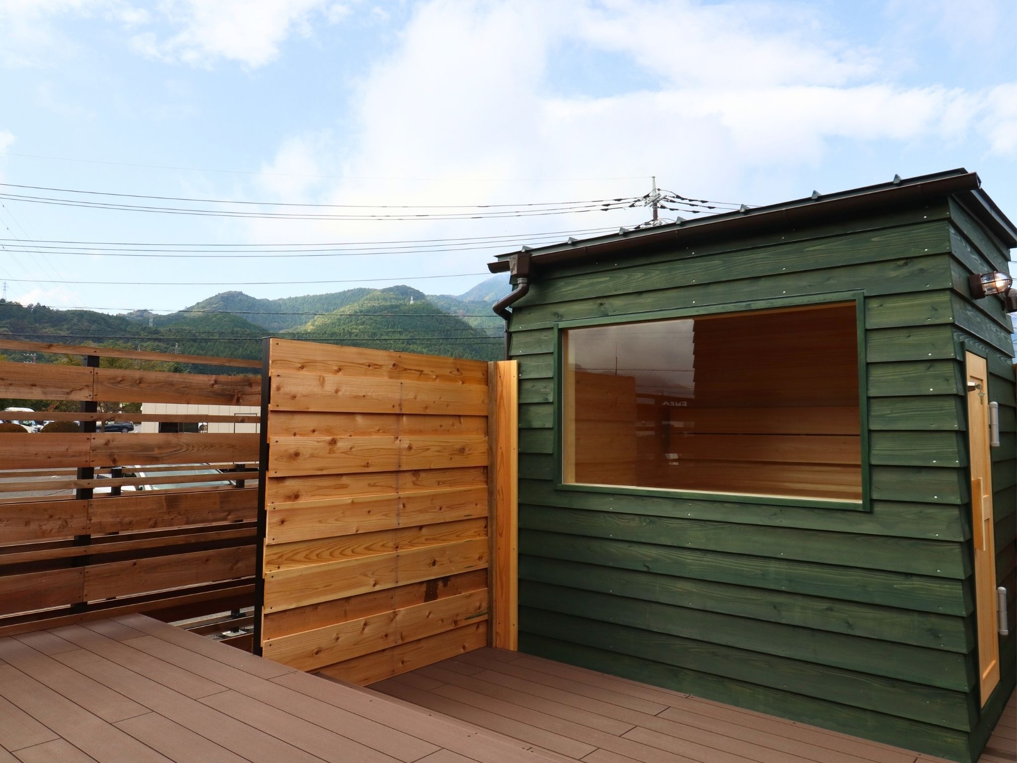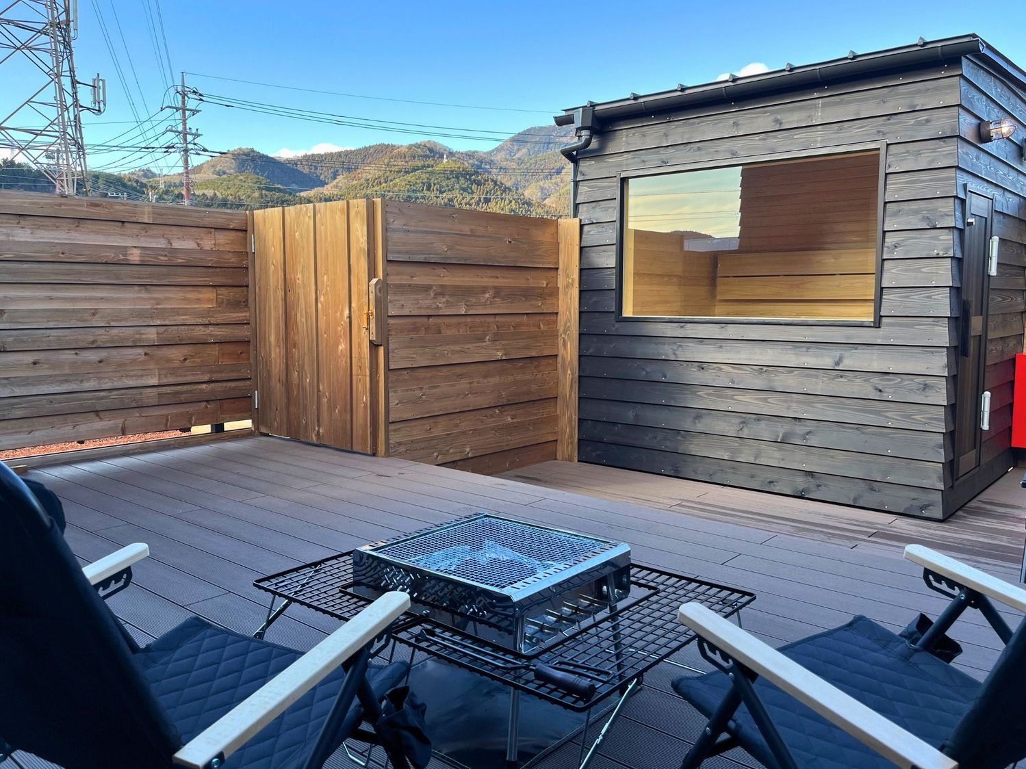 サウナでしっかり温まったあとは、澄んだ空気の那須の森が外気浴の舞台。