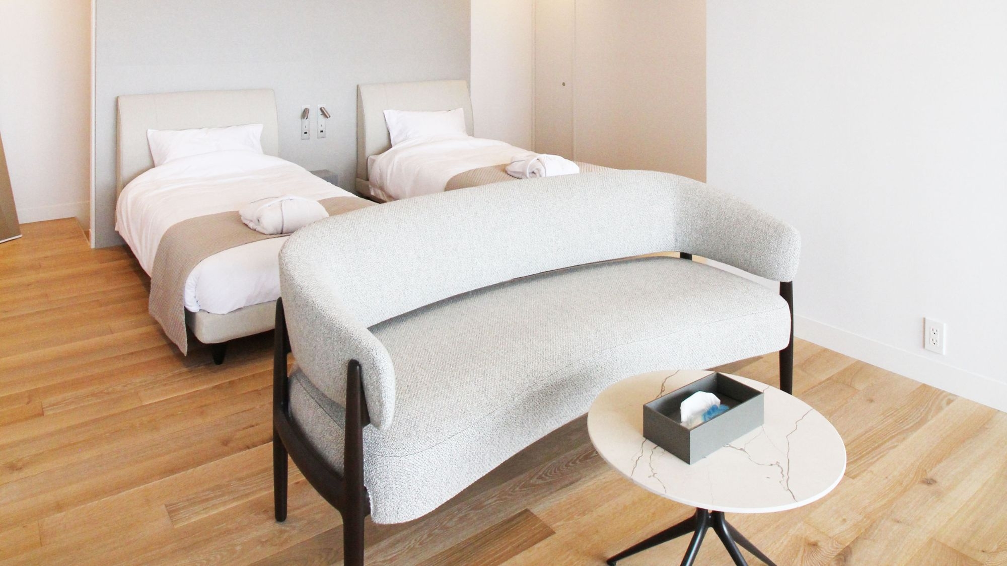 2名様専用の1ルームタイプ。室内にある専用サウナはテラスのプールと合わせていつでもご利用いただけます。