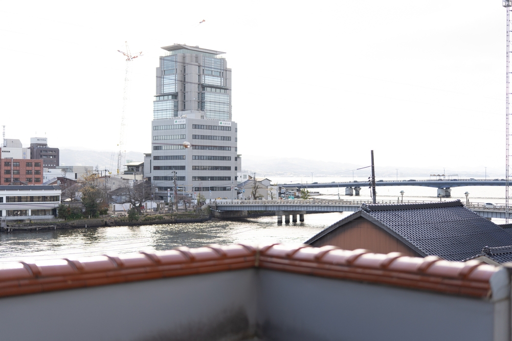 松江市中心部・東本町にある、繁華街の小さなビルの3階と4階をリノベーションした一棟貸しの宿です。徒歩圏内には松江城や宍道湖、大橋川などの観光名所が点在し、周辺には居酒屋やバーも多く、観光・ビジネスどちらの滞在にも便利な立地です。公共交通のアクセスも良好で、松江駅や最寄りのバス停からも歩いてお越しいただけます。建物の3階と4階が宿泊スペースとなっており、最上階には屋上もございます。大橋川や松江市街を一望できる開放的な眺めが広がり、天気の良い日には朝の静けさや夕焼けを楽しむことができます。キッチンや洗濯機などの設備も充実しており、さまざまな滞在スタイルに対応可能です。また、宿から徒歩1〜2分ほどの場所に専用駐車場(1台分)をご用意しています。