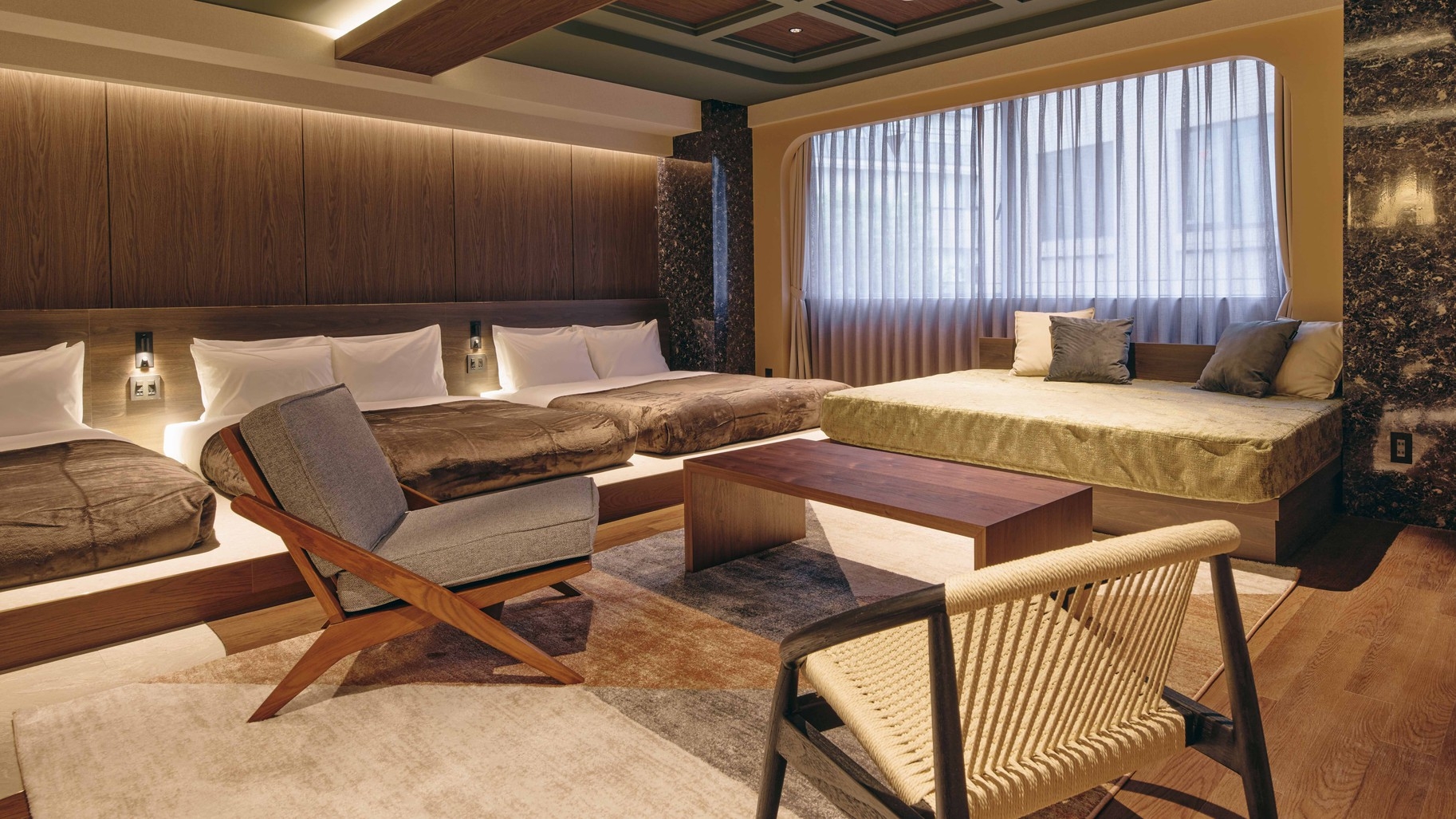 神谷町駅より徒歩1分。グループでも長期滞在でも快適に過ごせる設備を完備しています。