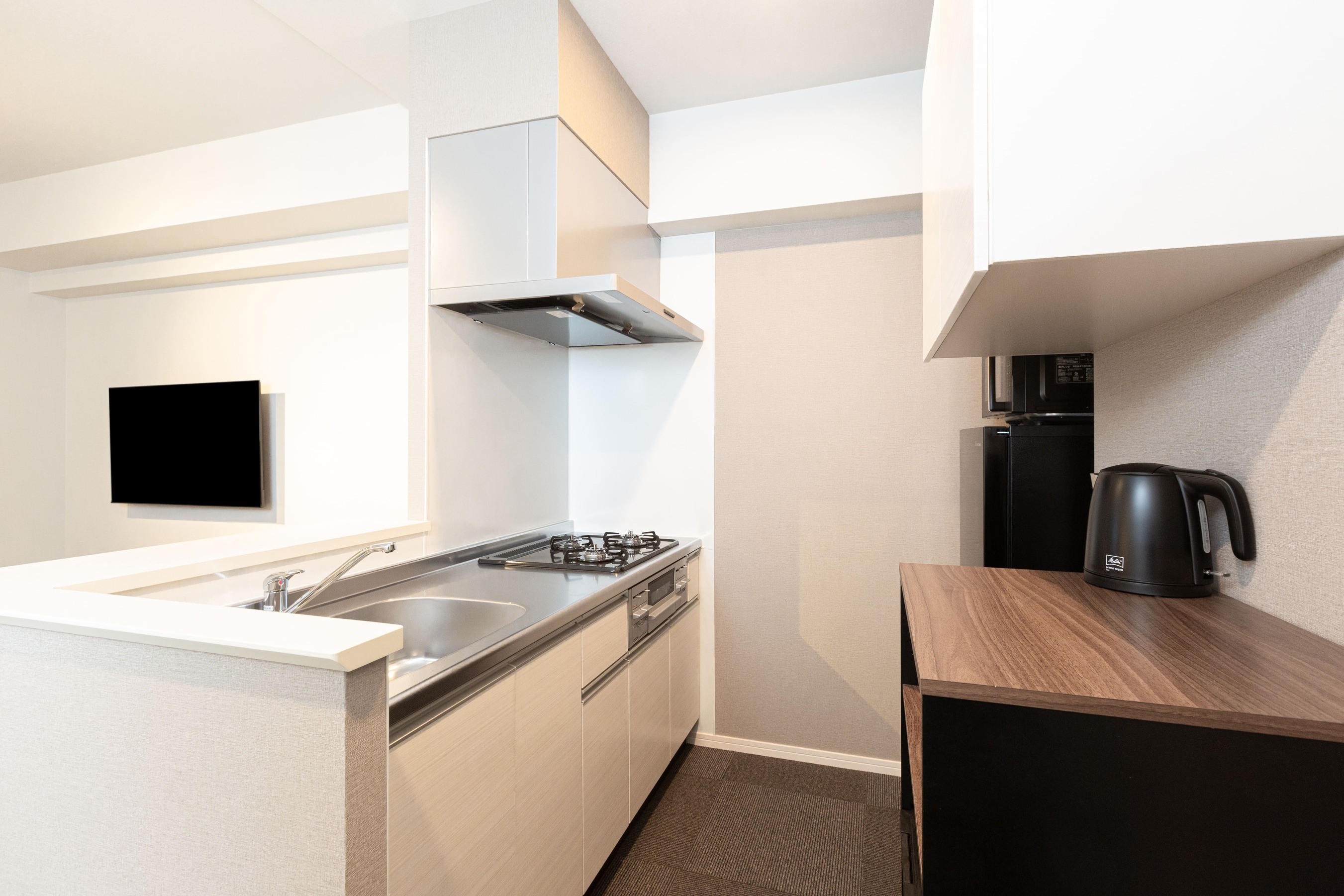 客室25㎡〜51㎡の広々空間が自慢です。他のホテルにはないキッチンが完備されておりますので長期滞在に非常に便利です。