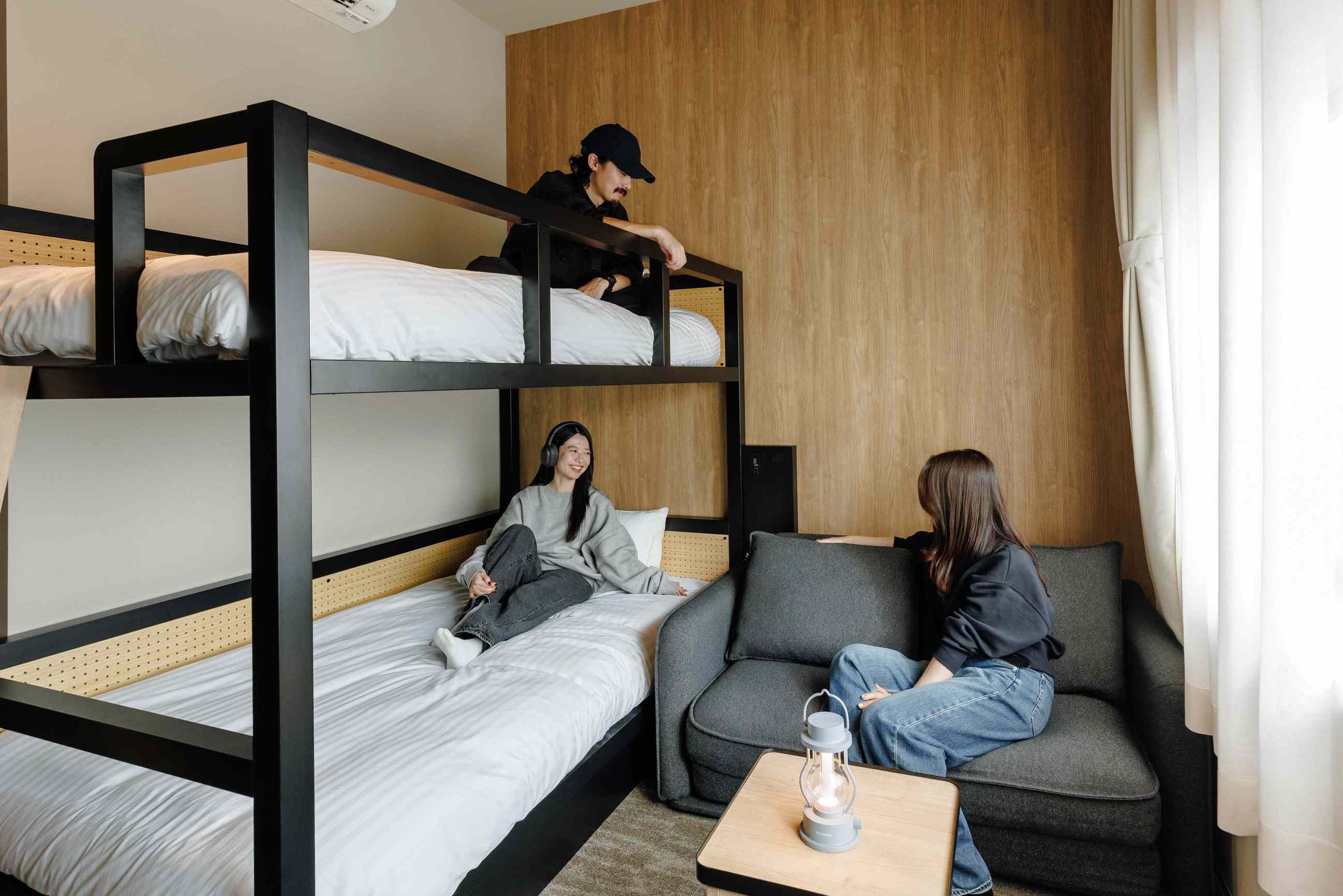 ソファーベッドを広げることで最大3名が宿泊可能。※ソファベッド利用の場合、大人3名でご予約ください