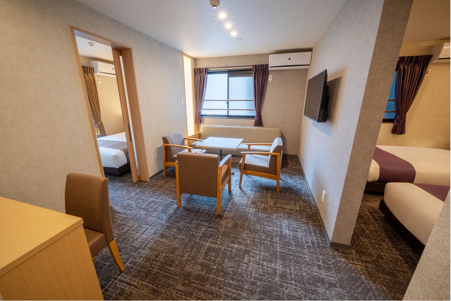 セミダブルベッド(W1,200mm)×2、ダブルベッド(W1.400mm)×1、ソファベッド(W970mm)×1