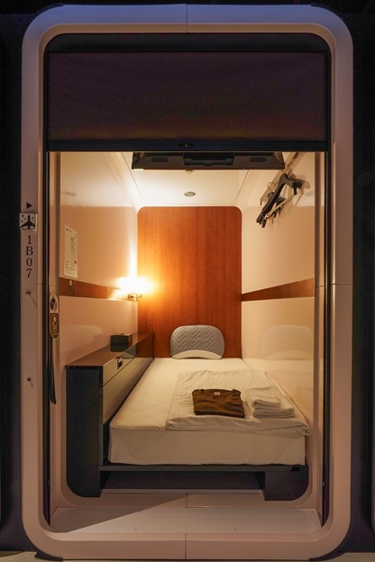 松江に山陰発のファーストキャビンが2026年1月19日オープン!快適な滞在に必要な空間と設備をコンパクトに凝縮したビジネスクラスキャビン。32インチ液晶テレビを完備。コンパクトながらも快適にお過ごしいただける空間を実現しています。※簡易宿所のためお部屋には鍵がかかりません。お部屋の中にはキャリーケースを置けるスペースがございません。※お客様用の駐車スペースはございません。周辺のコインパーキングをご利用ください。※2025年12月1日より、松江市では1名1泊税抜き5000円以上の宿泊代に200円の宿泊税が課税されます。プラン料金に宿泊税は含まれておりません。チェックイン時にご精算下さい。