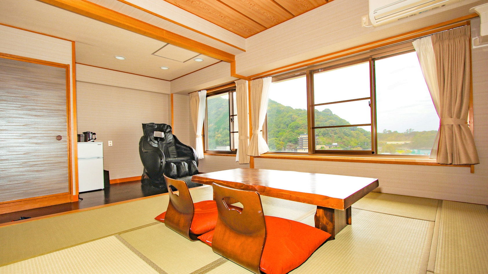 3名定員の和室(禁煙)です。お部屋は山側の角部屋です。