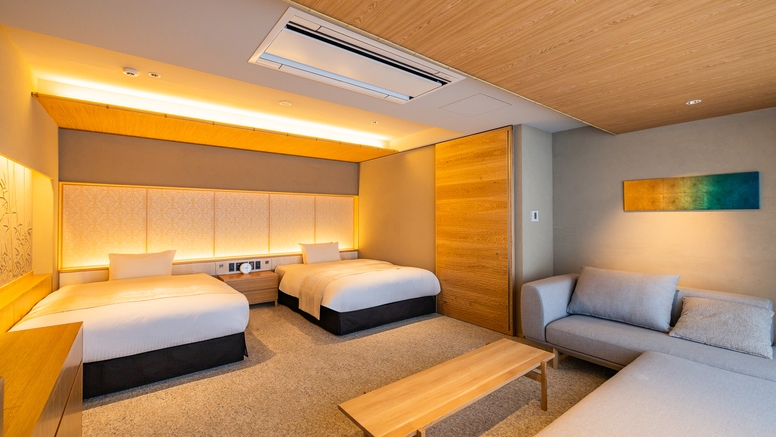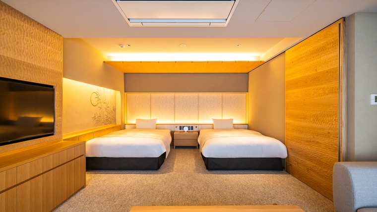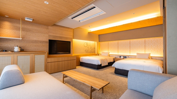 2ダブルベッド+ソファ 43平米超の広々とした空間に、2台のダブルベッドとソファを備えた贅沢な客室。ご家族やご友人とゆったりとした時間をお過ごしいただけます。
