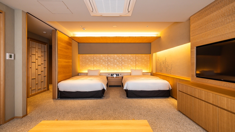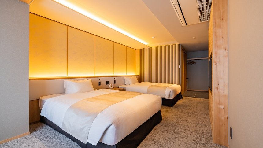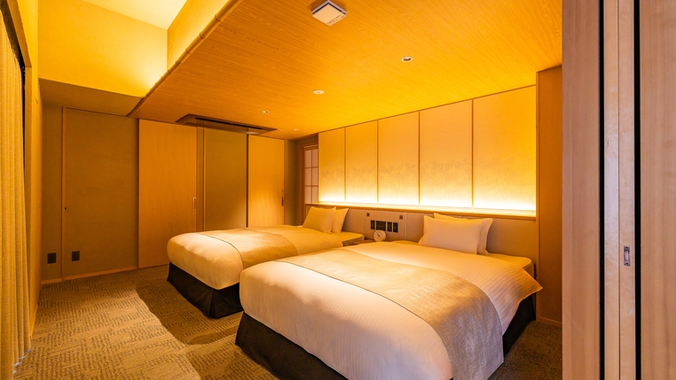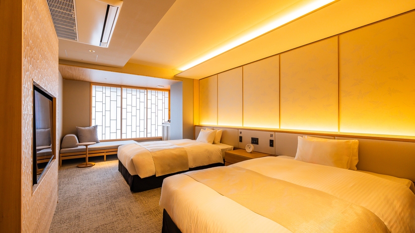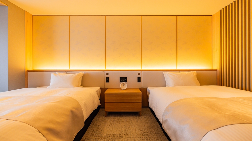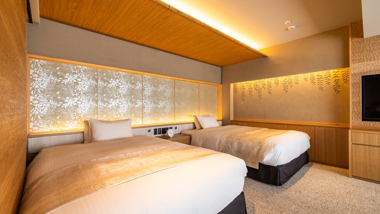 2ダブルベッド 落ち着いた色調と上質なインテリアが調和する38平米超の客室。2台のダブルベッドを配し、ゆとりある滞在を叶えます。