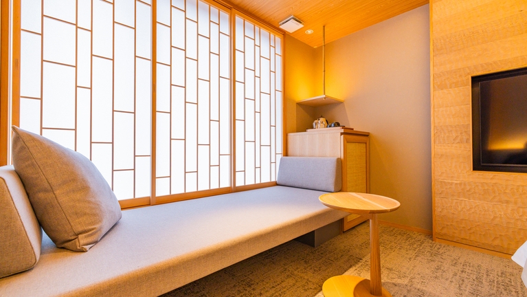 名刹や祇園へ徒歩圏内という抜群の立地にありながら、館内は光と影が織りなす静謐な空間。