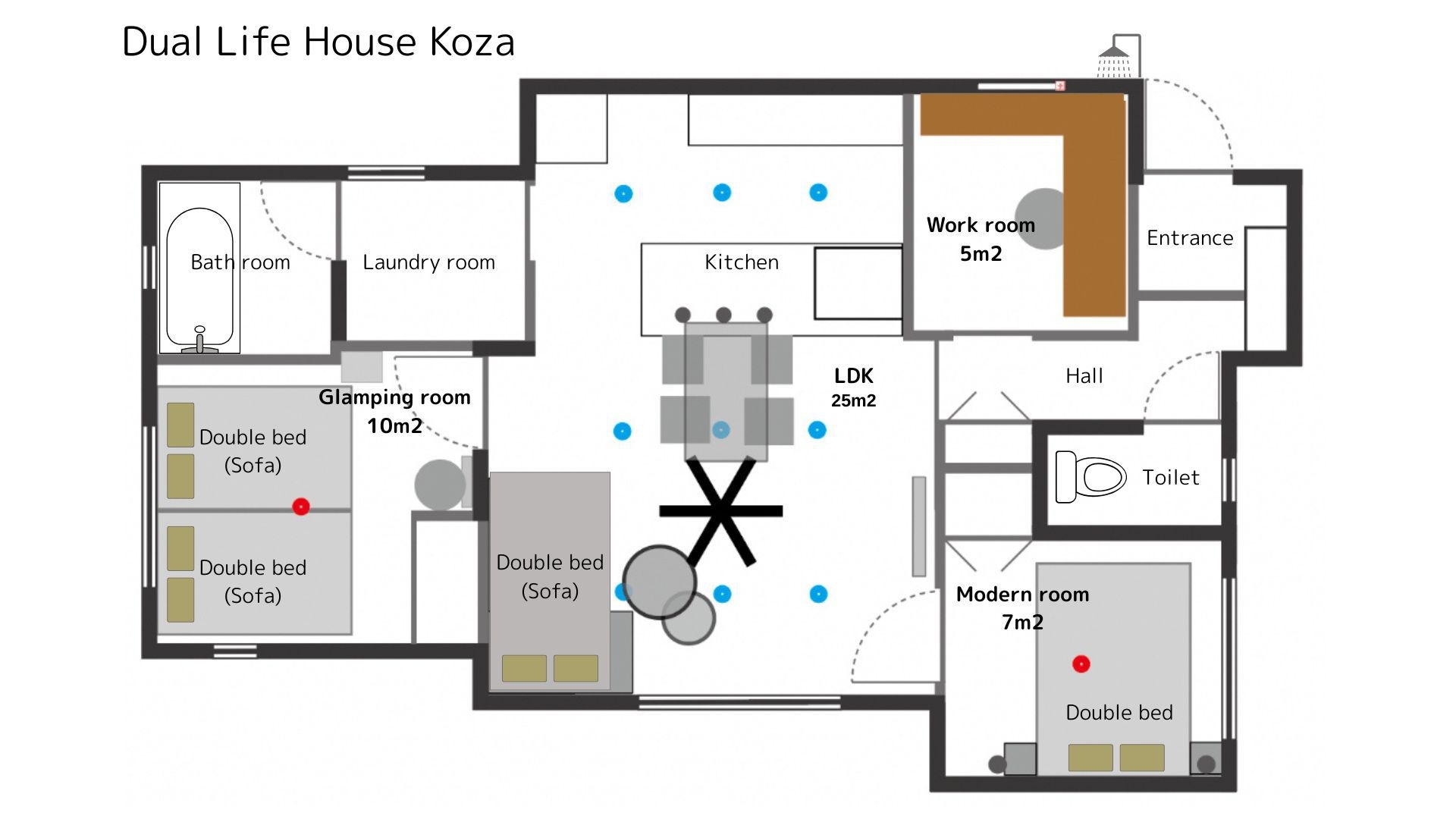 2025年新築オープン 平屋の一棟貸切宿です。沖縄市コザエリアに位置し、観光・イベント・ビジネスの拠点として便利にご利用いただけます。ダブルベッド・ソファベッドなどを備え、4名様でゆったり快適にお過ごしいただけます。添い寝OKであれば最大8名様までご利用可能ですので、ご家族旅行やグループ滞在にもおすすめです。キッチン、電子レンジ、調理器具一式、洗濯乾燥機を完備。長期滞在にも対応しております。無料Wi-Fi、無料駐車場3台分あり。当施設は無人運営となっております。チェックイン前日に暗証番号をお送りし、セルフチェックインにてご入室いただきます。※本プランは事前決済のみとなります。※滞在中の清掃およびアメニティの追加補充はございません。ゆったりと「暮らすように泊まる」沖縄滞在をお楽しみください。