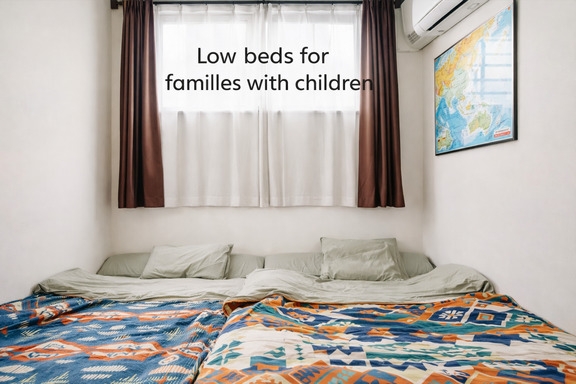 ダブルベッド4台完備。4名様で快適。添い寝OKなら最大8名まで可。セルフチェックイン方式。テレワーク部屋完備・無料駐車場3台あり。