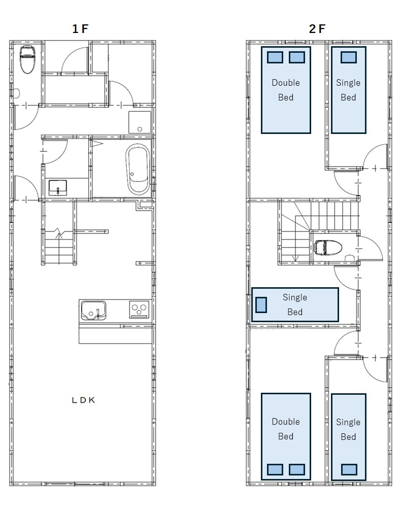 1棟貸し シングルベッドルーム3室 ダブルベッドルーム2室