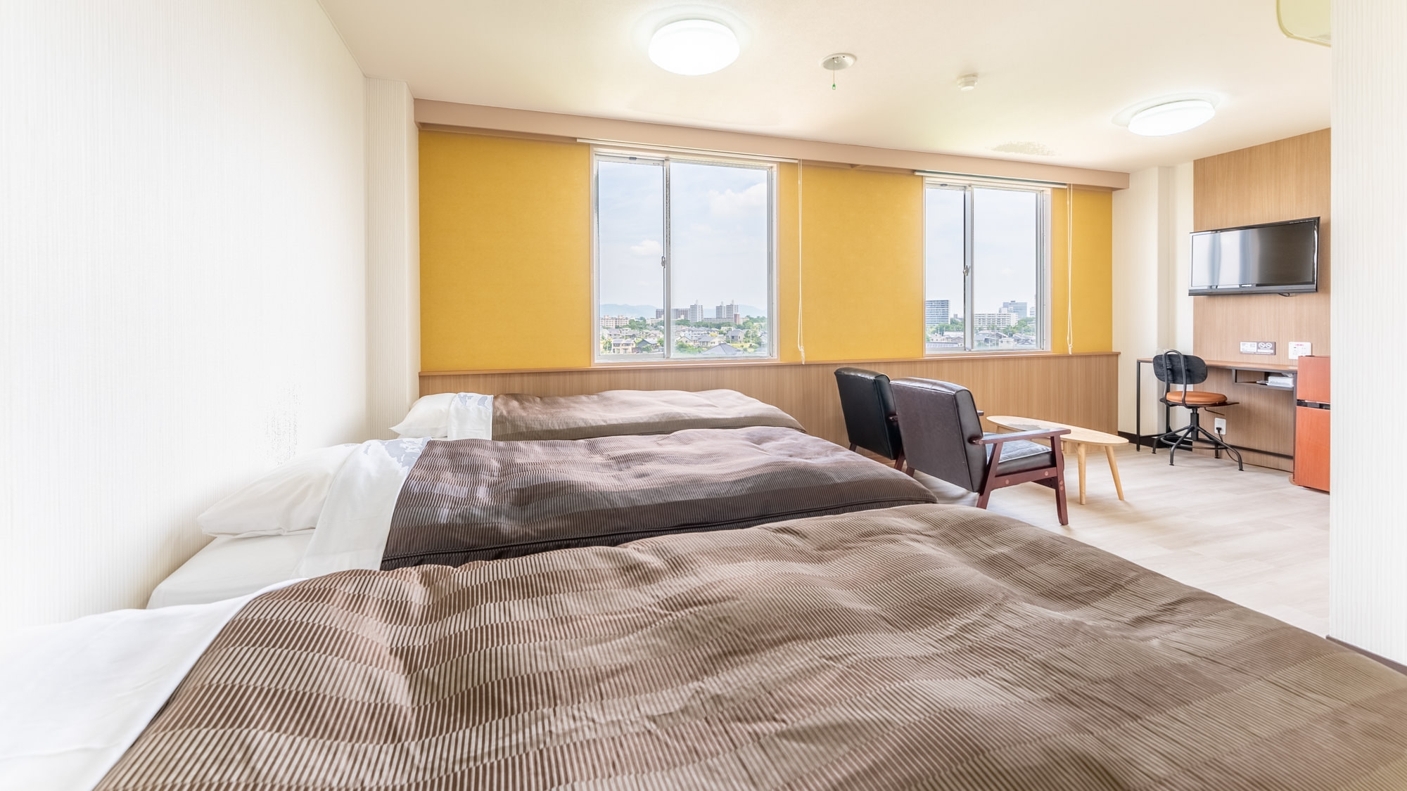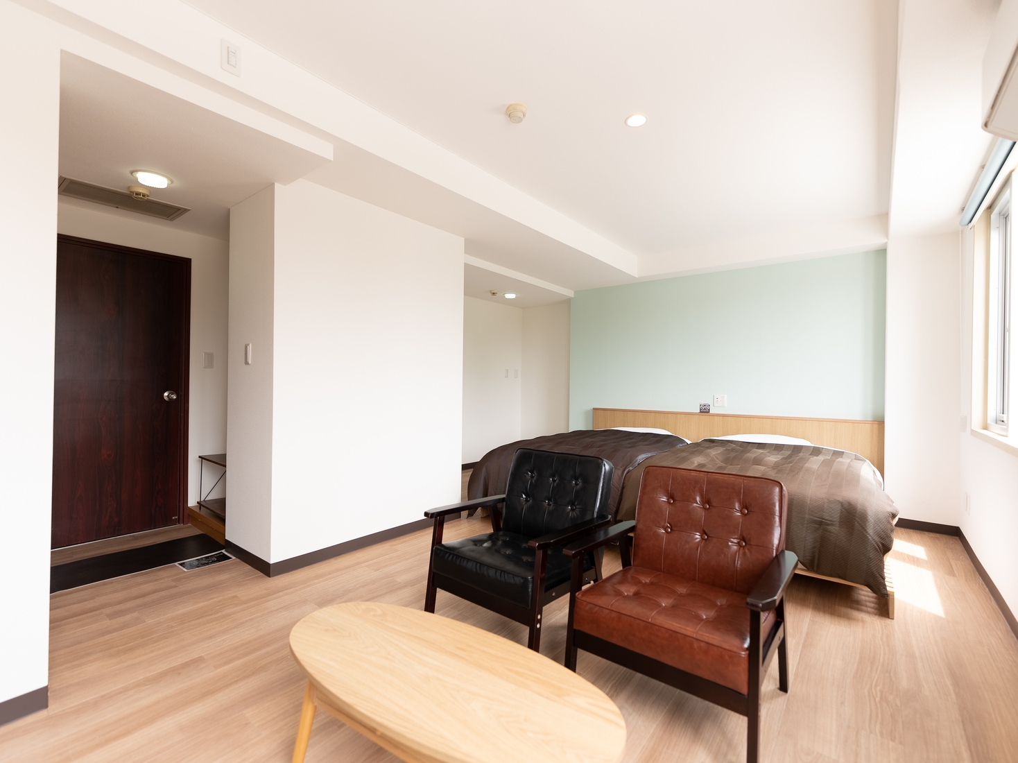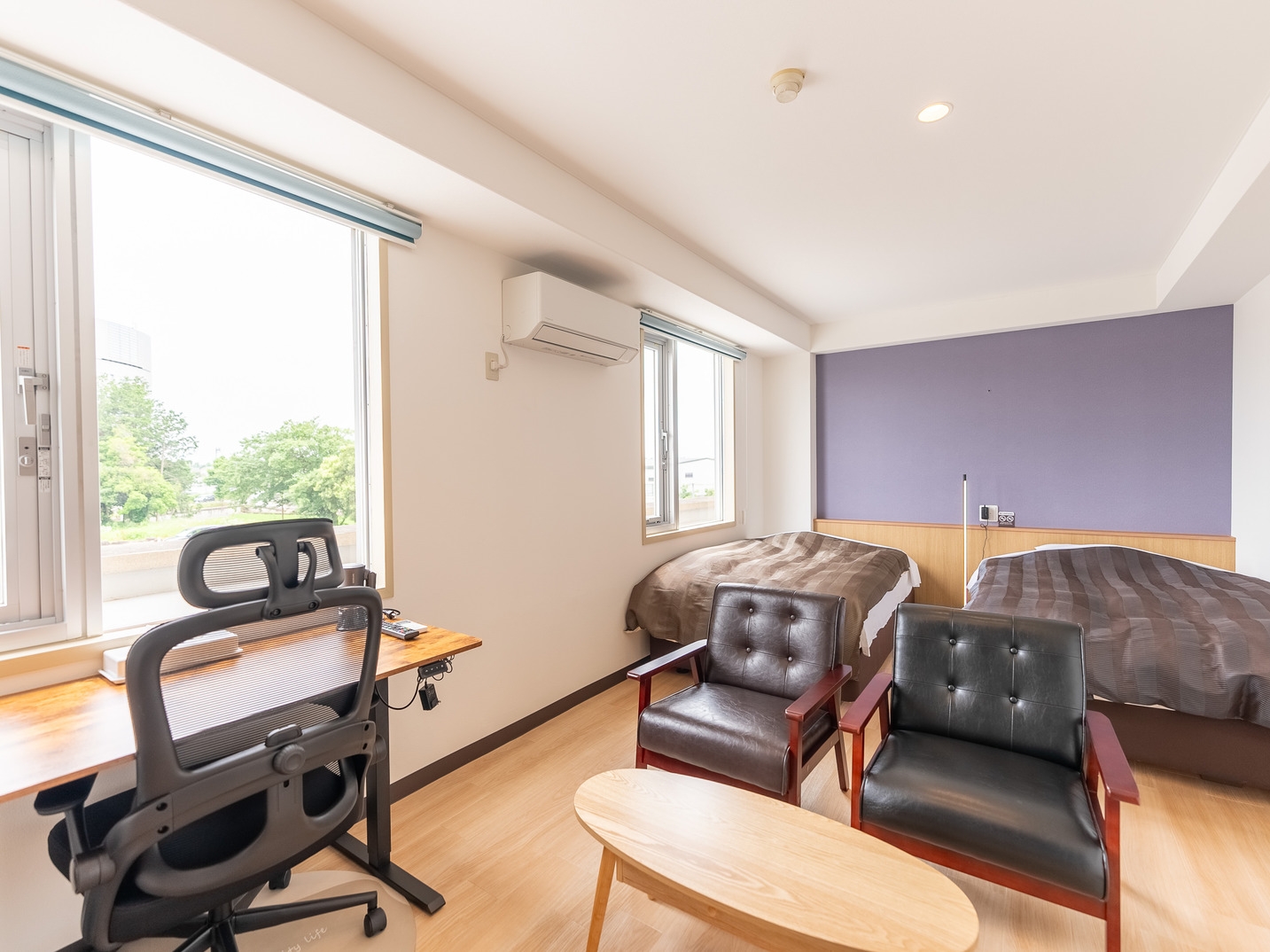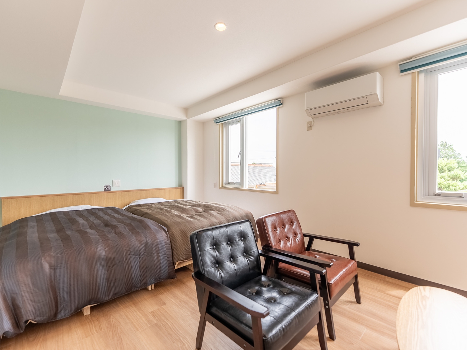 4月リニューアル済み、セミダブルマットレス2枚を設置した広々とした部屋です。