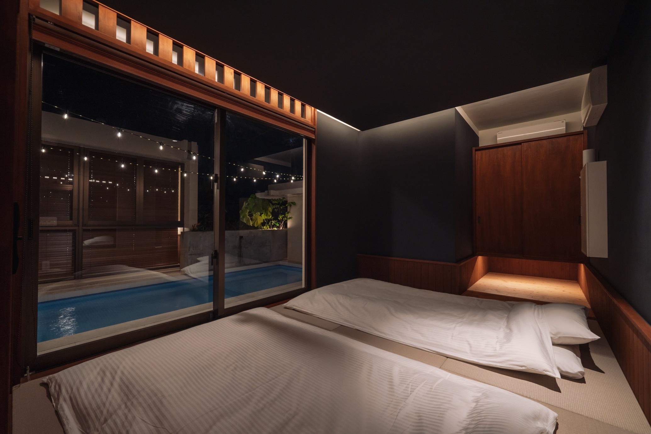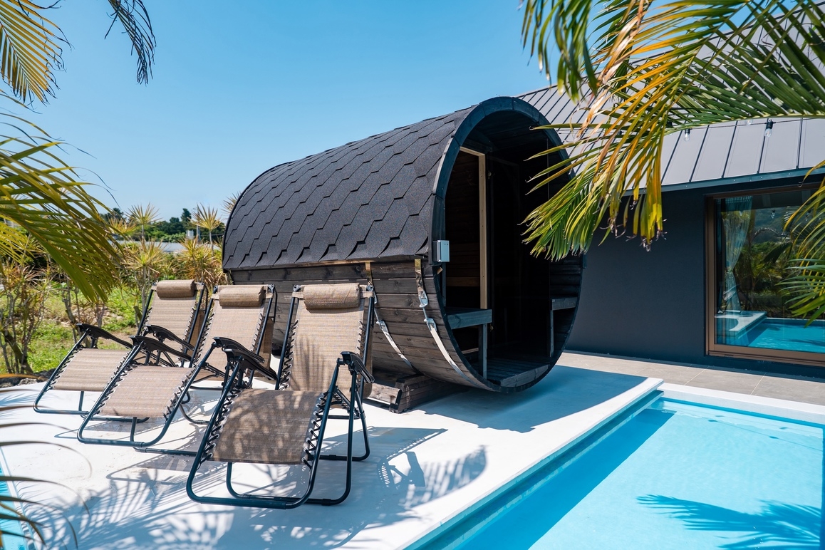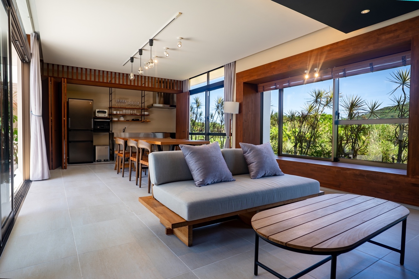 “穏やかな沖縄の自然とプライベートプールが織りなす、贅沢な隠れ家ヴィラ”やんばるの豊かな自然に包まれた一棟貸切のラグジュアリーヴィラ。プライベートプールとサウナ、BBQテラス、光と緑に満ちた静かな時間をお過ごしいただけます。高天井の開放的なリビング、コンクリート×木の洗練された空間設計、ダブルベッド6台を備えた3LDKで最大12名まで宿泊可能。Yumejinのスキンケアセットや充実したキッチン設備など、上質な滞在を支えるアメニティも完備しています。名護市街地や美ら海水族館、古宇利島へも好アクセス。都会の喧騒を離れ、星空の下で過ごす“静かな贅沢”をお楽しみください。■施設概要(1棟貸切)・リビングルーム・システムキッチン(IHクッキングヒーター/冷蔵庫/電子レンジ/オーブントースター/電気ポッド/炊飯器/ワインクーラー/調理器具・食器一式完備)・ベッドルーム3室・バスルーム・ホームプロジェクター■屋外設備・プール・サウナ・屋外家具・BBQ機材(BBQ機材レンタル料¥5,000/清掃費込み・要事前予約)■設備・アメニティ・無料Wi-Fi・無料専用駐車場(2台)・冷暖房完備(各部屋)・洗濯乾燥機(洗剤・柔軟剤付)・ドライヤー・バスアメニティ(シャンプー・リンス・ボディソープ)・アメニティ(歯ブラシ・ヘアブラシ・綿棒・ゴムバンド)・Yumejin(ゆめじん)のスキンケアセット(洗顔料・クレンジング・化粧水・乳液)■アクセス那覇空港より車で約80分■周辺観光・屋我地ビーチ(車で 約5分)・古宇利大橋(車で 約15分)・ジャングリア沖縄(車で 約15分)・美ら海水族館(車で約40分)