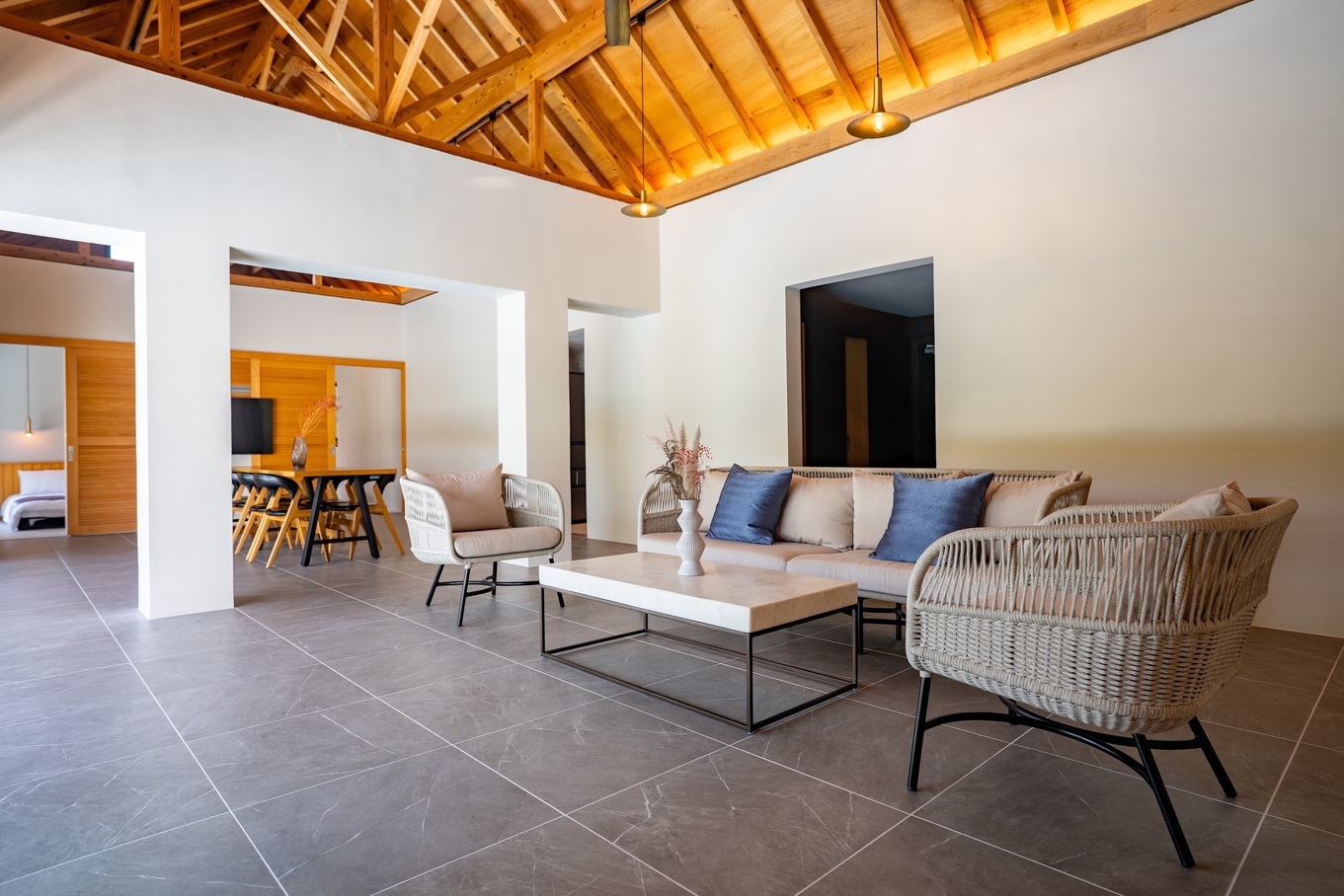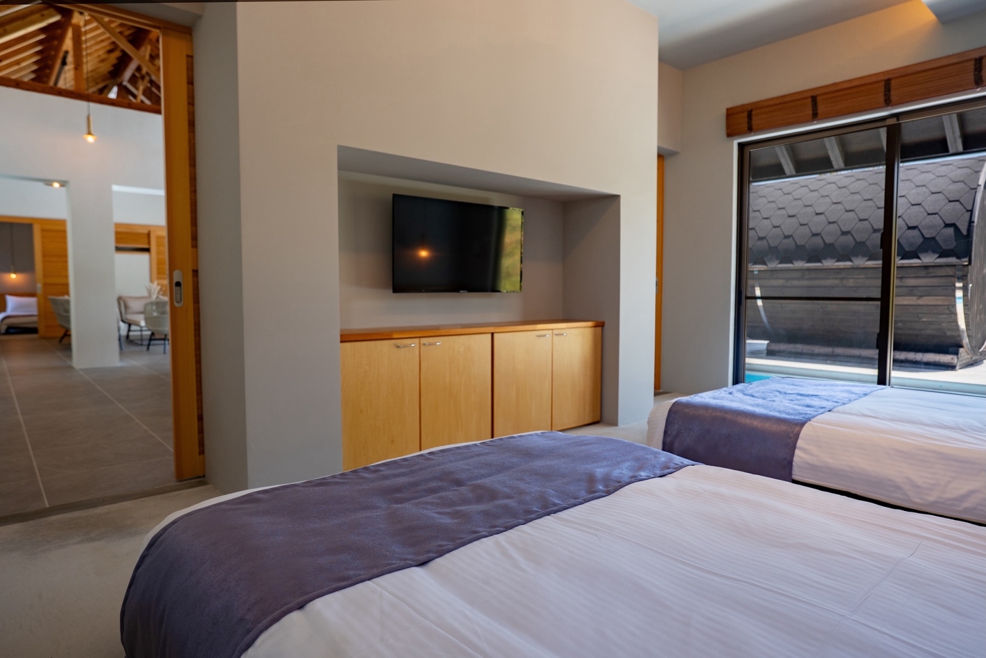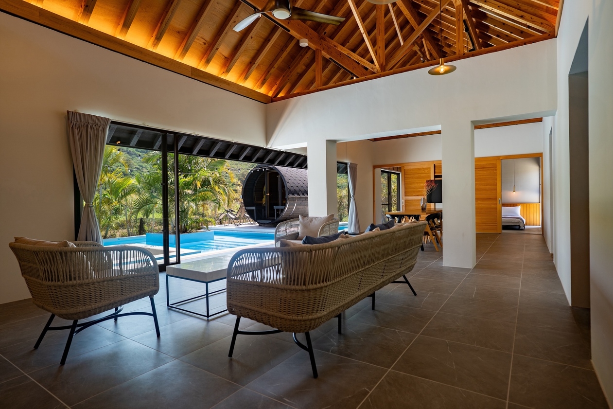 “穏やかな沖縄の自然とプライベートプールが織りなす、贅沢な隠れ家ヴィラ”やんばるの豊かな自然に包まれた一棟貸切のラグジュアリーヴィラ。プライベートプールとサウナ、BBQテラス、光と緑に満ちた静かな時間をお過ごしいただけます。高天井の開放的なリビング、コンクリート×木の洗練された空間設計、ダブルベッド6台を備えた3LDKで最大12名まで宿泊可能。Yumejinのスキンケアセットや充実したキッチン設備など、上質な滞在を支えるアメニティも完備しています。名護市街地や美ら海水族館、古宇利島へも好アクセス。都会の喧騒を離れ、星空の下で過ごす“静かな贅沢”をお楽しみください。■施設概要(1棟貸切)・リビングルーム・システムキッチン(IHクッキングヒーター/冷蔵庫/電子レンジ/オーブントースター/電気ポッド/炊飯器/ワインクーラー/調理器具・食器一式完備)・ベッドルーム3室・バスルーム・ホームプロジェクター■屋外設備・プール・サウナ・屋外家具・BBQ機材(BBQ機材レンタル料¥5,000/清掃費込み・要事前予約)■設備・アメニティ・無料Wi-Fi・無料専用駐車場(2台)・冷暖房完備(各部屋)・洗濯乾燥機(洗剤・柔軟剤付)・ドライヤー・バスアメニティ(シャンプー・リンス・ボディソープ)・アメニティ(歯ブラシ・ヘアブラシ・綿棒・ゴムバンド)・Yumejin(ゆめじん)のスキンケアセット(洗顔料・クレンジング・化粧水・乳液)■アクセス那覇空港より車で約80分■周辺観光・屋我地ビーチ(車で 約5分)・古宇利大橋(車で 約15分)・ジャングリア沖縄(車で 約15分)・美ら海水族館(車で約40分)