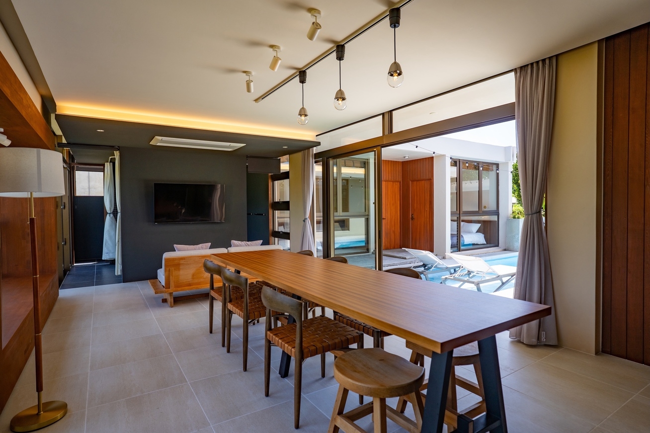 “穏やかな沖縄の自然とプライベートプールが織りなす、贅沢な隠れ家ヴィラ”やんばるの豊かな自然に包まれた白を基調とした開放的なラグジュアリーヴィラ。白を基調とした洗練された空間と、プールを囲む開放的な設計が、特別な滞在を演出します。3LDK・最大10名まで宿泊可能。Yumejinのスキンケアセットや充実したキッチン設備など、上質な滞在を支えるアメニティも完備しています。名護市街地や美ら海水族館、古宇利島へも好アクセス。都会の喧騒を離れ、光と静寂に包まれる贅沢なひとときをお過ごしください。■施設概要(1棟貸切)・リビングルーム&#・システムキッチン(IHクッキングヒーター/冷蔵庫/電子レンジ/オーブントースター/電気ポッド/炊飯器/調理器具・食器一式完備)・ベッドルーム2室+和室・バスルーム■屋外設備・プール・屋外家具・BBQ機材(BBQ機材レンタル料¥5,000/清掃費込み・要事前予約)■設備・アメニティ・無料Wi-Fi・無料専用駐車場(2台)・冷暖房完備(各部屋)・洗濯乾燥機(洗剤・柔軟剤付)・ドライヤー・バスアメニティ(シャンプー・リンス・ボディソープ)・アメニティ(歯ブラシ・ヘアブラシ・綿棒・ゴムバンド)・Yumejin(ゆめじん)のスキンケアセット(洗顔料・クレンジング・化粧水・乳液)■アクセス那覇空港より車で約80分■周辺観光・屋我地ビーチ(車で 約5分)・古宇利大橋(車で 約15分)・ジャングリア沖縄(車で 約15分)・美ら海水族館(車で約40分)