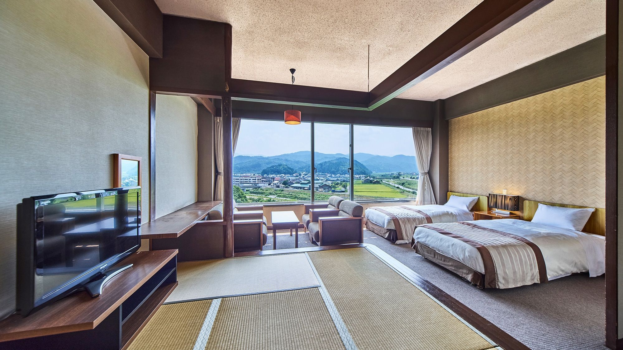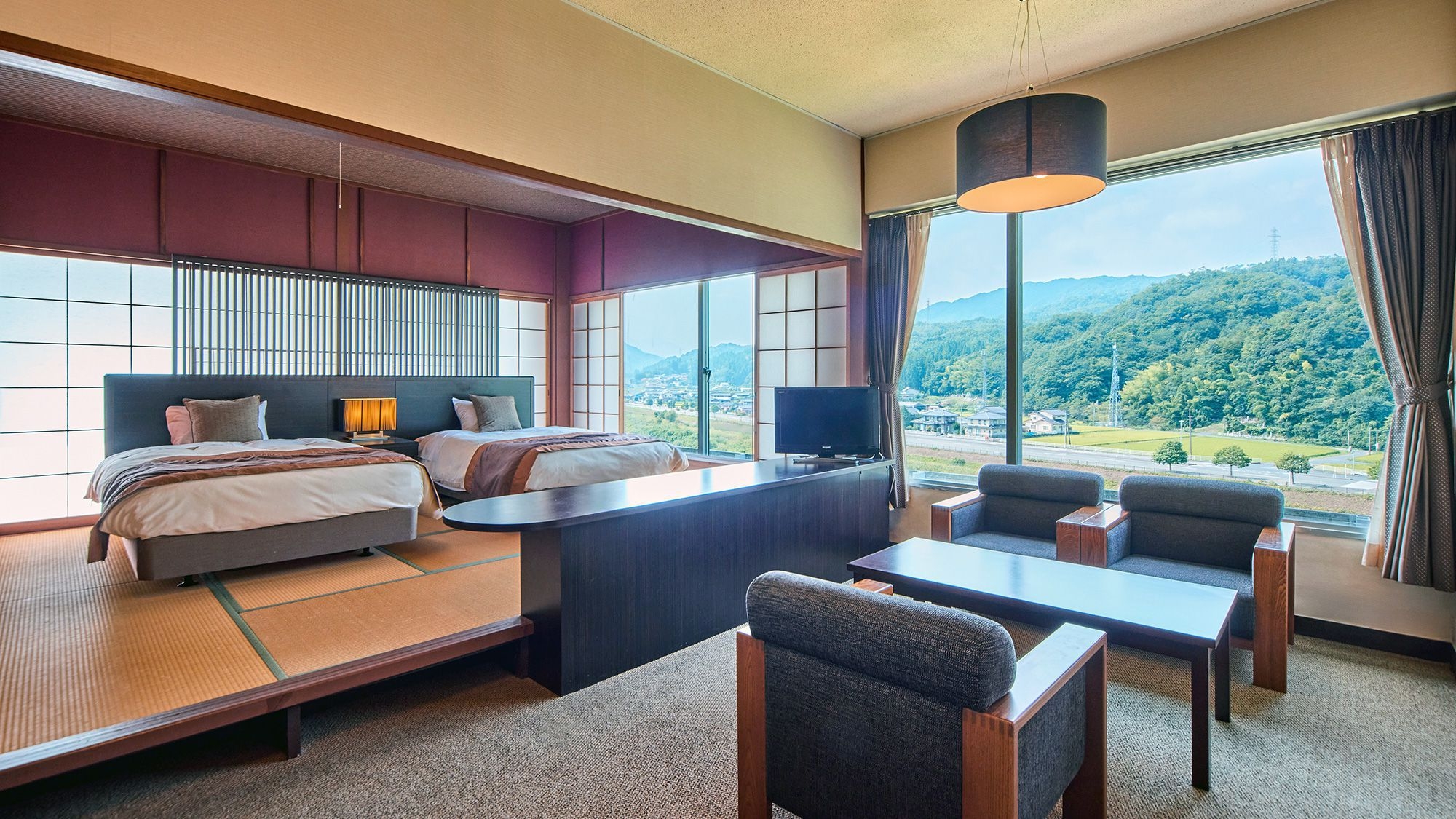 7.5畳の和室と幅92cmのベッド(シモンズ製マットレス使用)が2台付いた和洋室をご用意いたします。