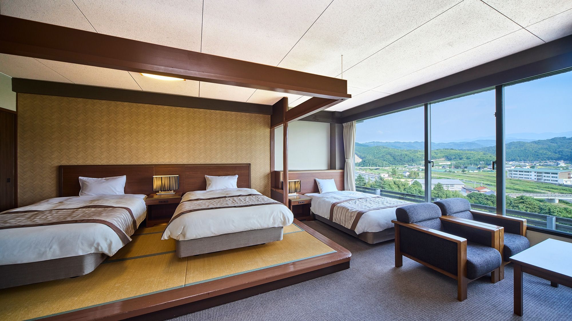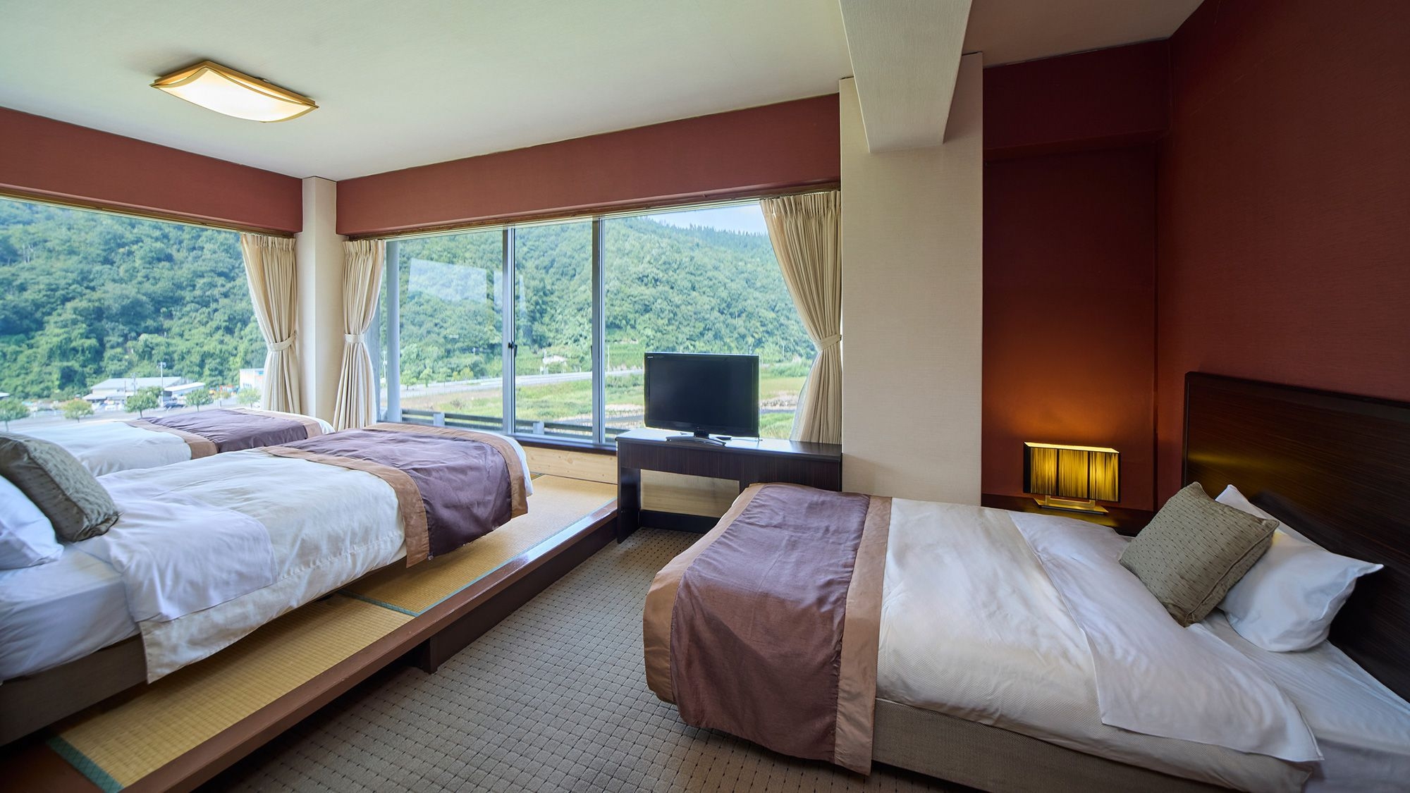 37平米のゆったり客室に幅120cmのシモンズ製ベッドが3台付いたお部屋です。