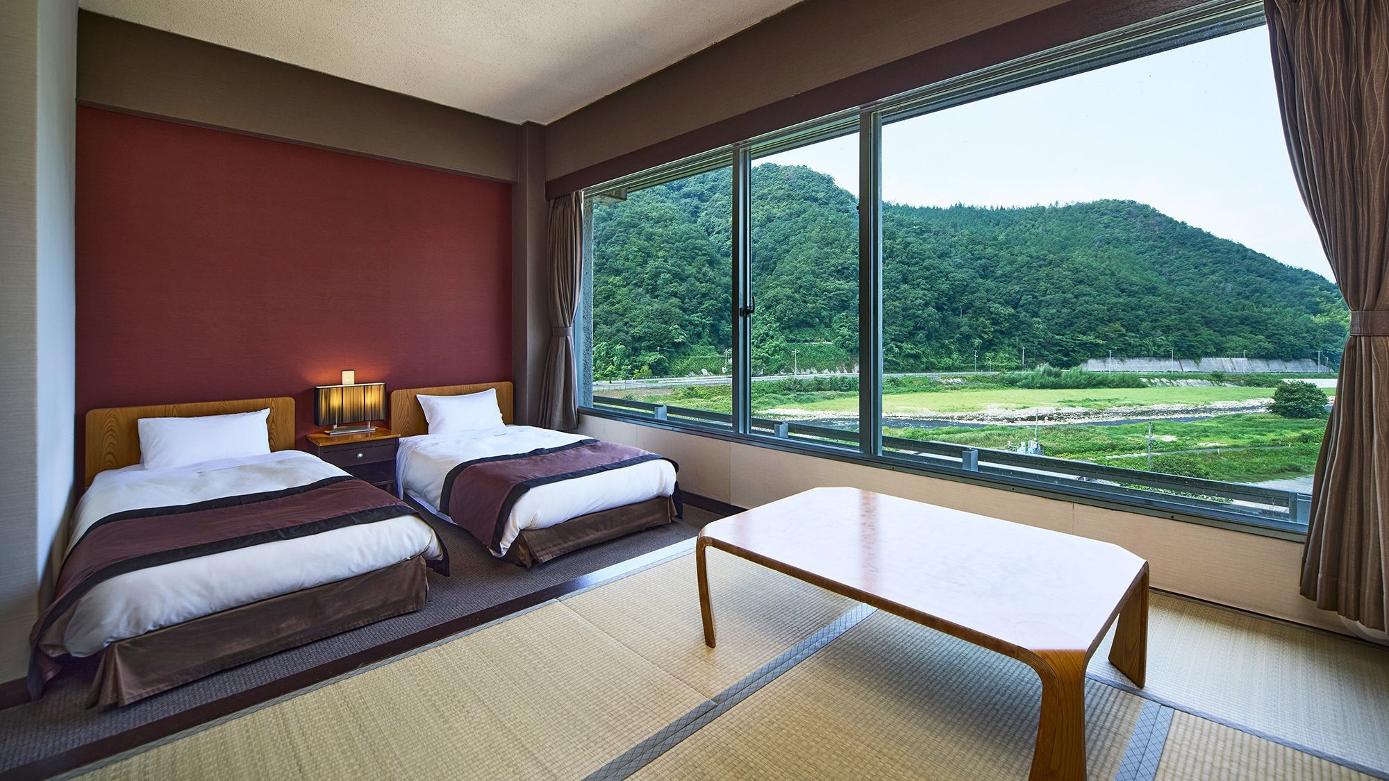 6畳の和室と幅92cmのベッドが2台付いた和洋室をご用意いたします。
