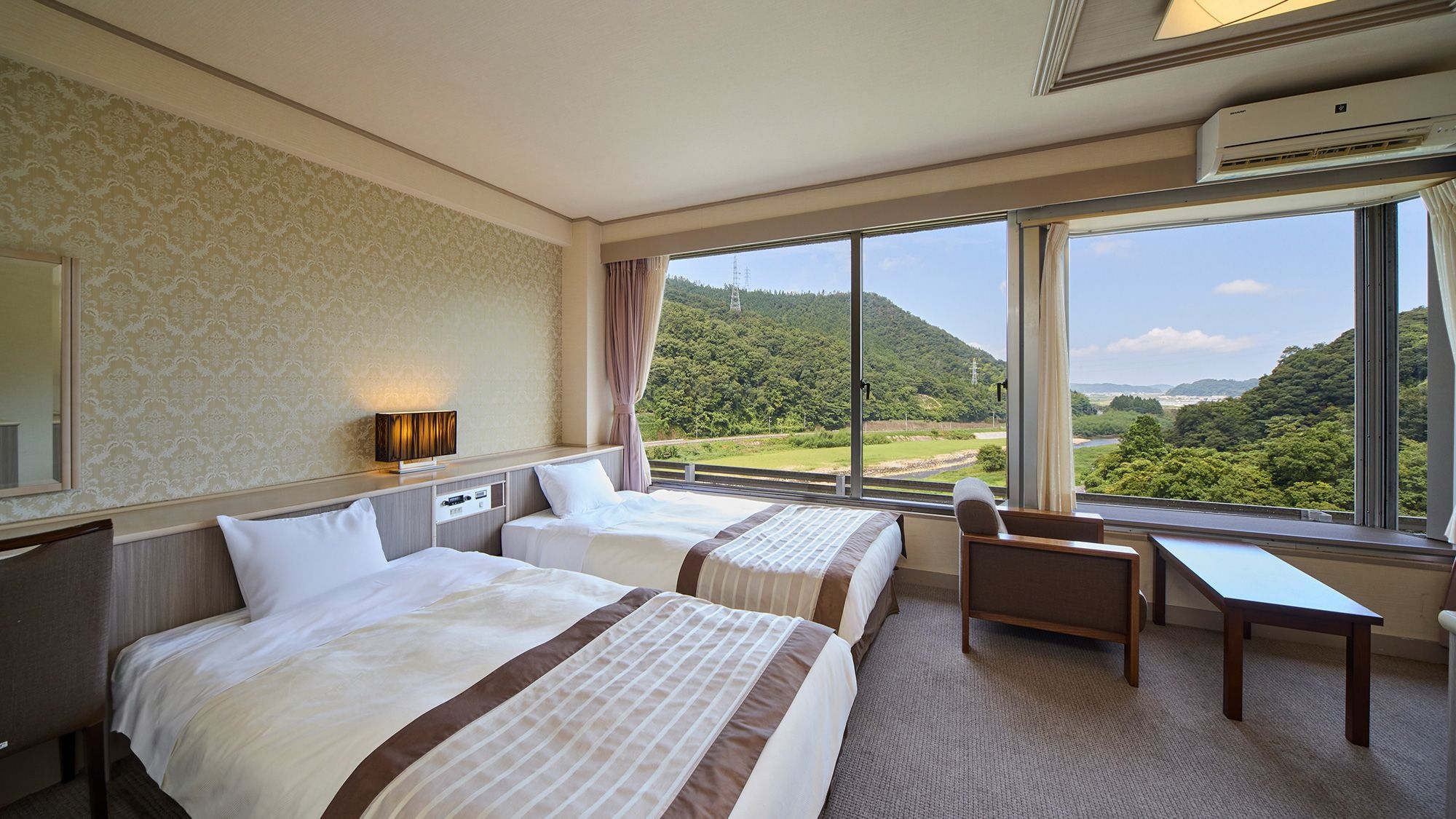 25平米の客室に幅110cmのベッドが2台付いたお部屋をご用意いたします。