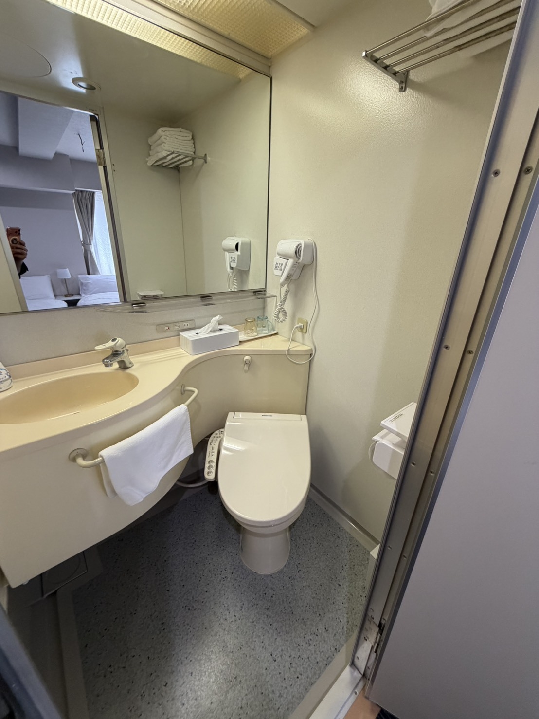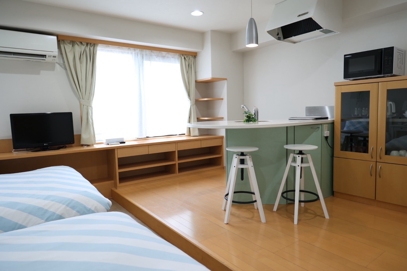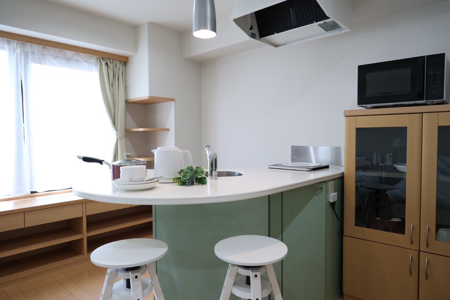 共有洗濯機(無料)、ドライヤー、シャンプー、ボディーソープ、バスタオル、歯ブラシを完備し、無料Wi-Fi、地上・BSデジタルテレビ、温水洗浄便座も備えています。