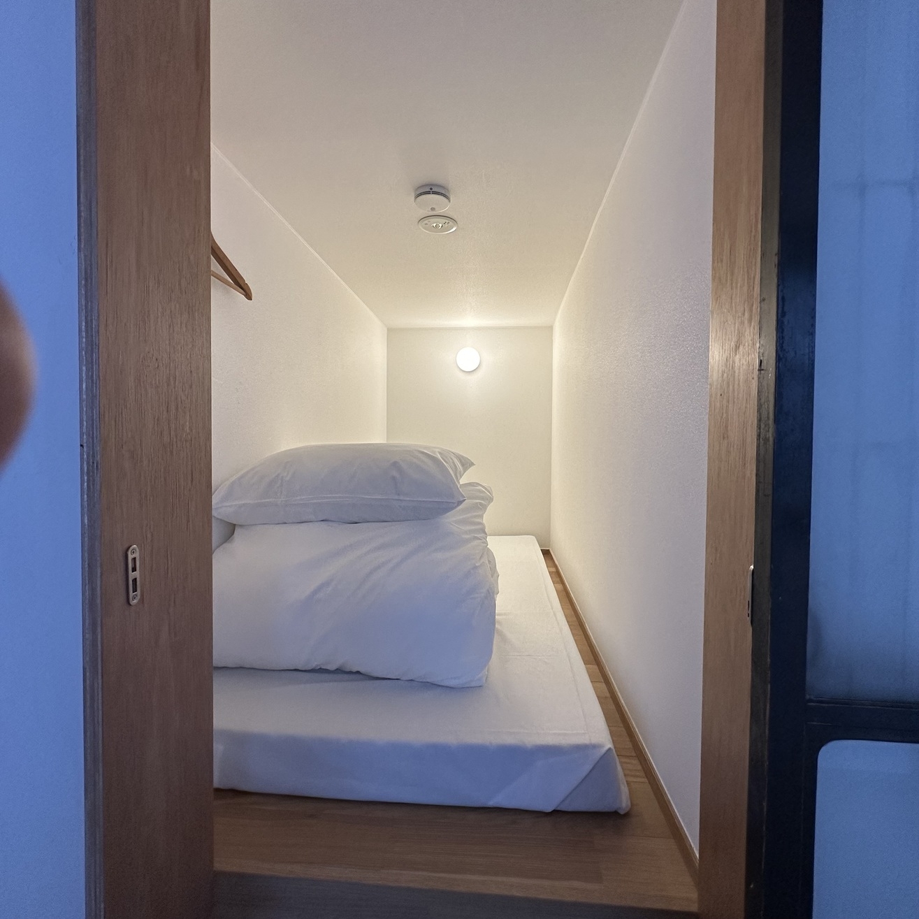 シングルサイズのマットレスを敷いたカプセルタイプの客室