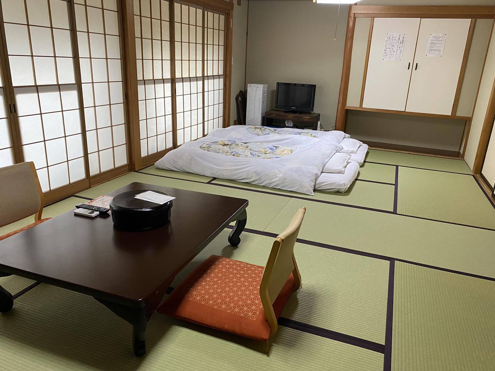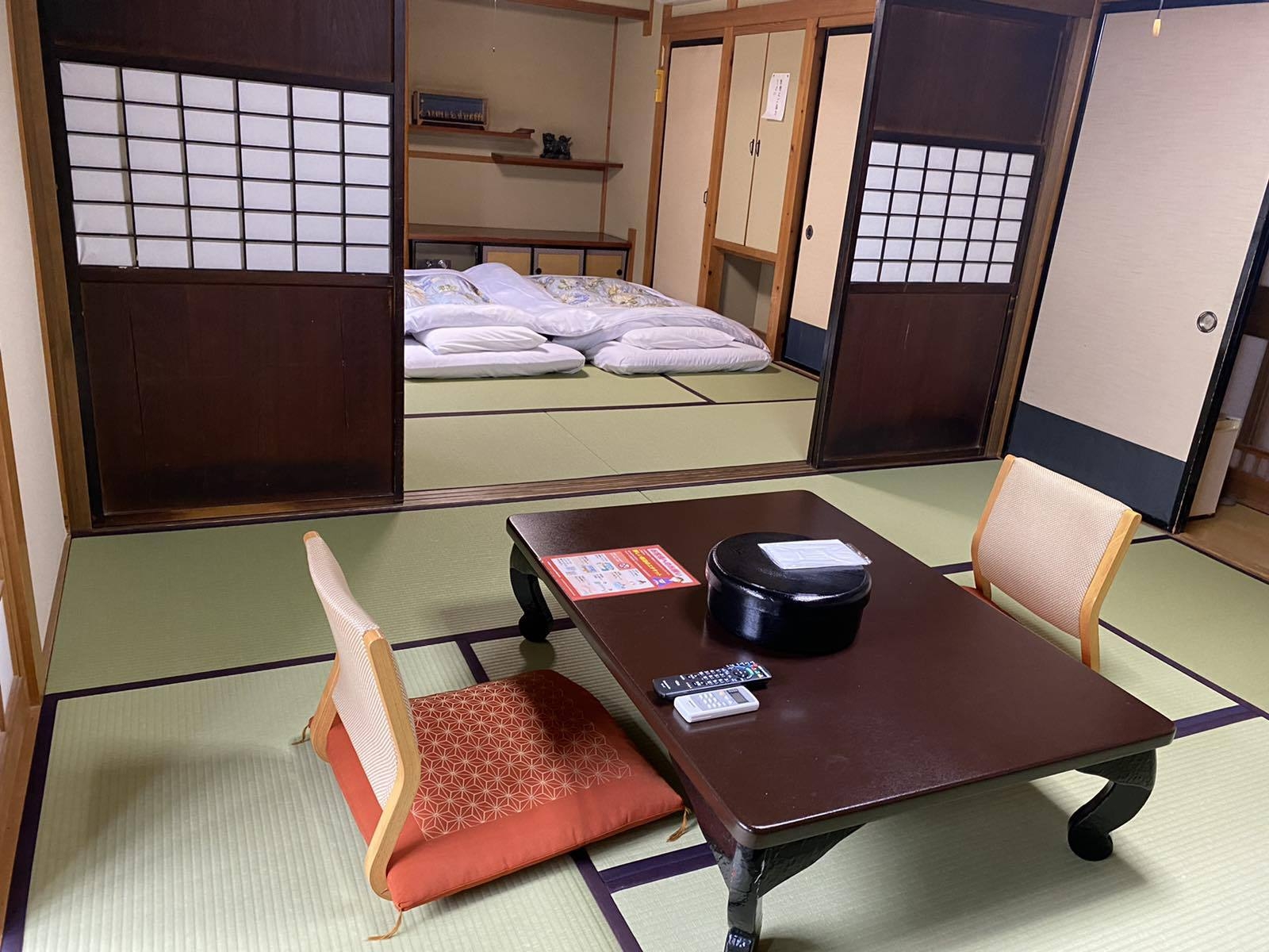 ※バスなし 2間続きの和室です(8畳+8畳)。 二人でご利用時は、1部屋に布団をあらかじめ敷かせていただいております。 ※標準目安は大人4名様です。