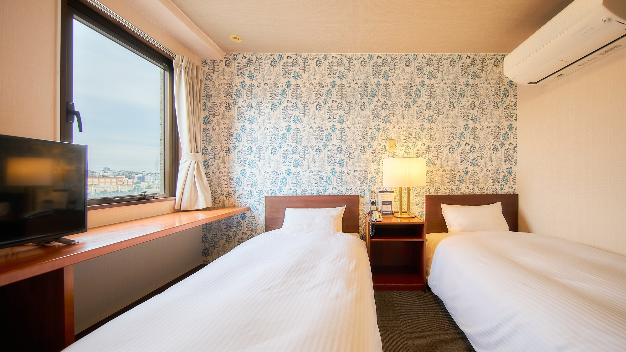 16平米〜のゆとりある広さの客室。フランスベッド社製のマットレスを導入。無料Wi-Fi完備、インターネットTVの視聴可能。※この部屋はタバコは吸えません
