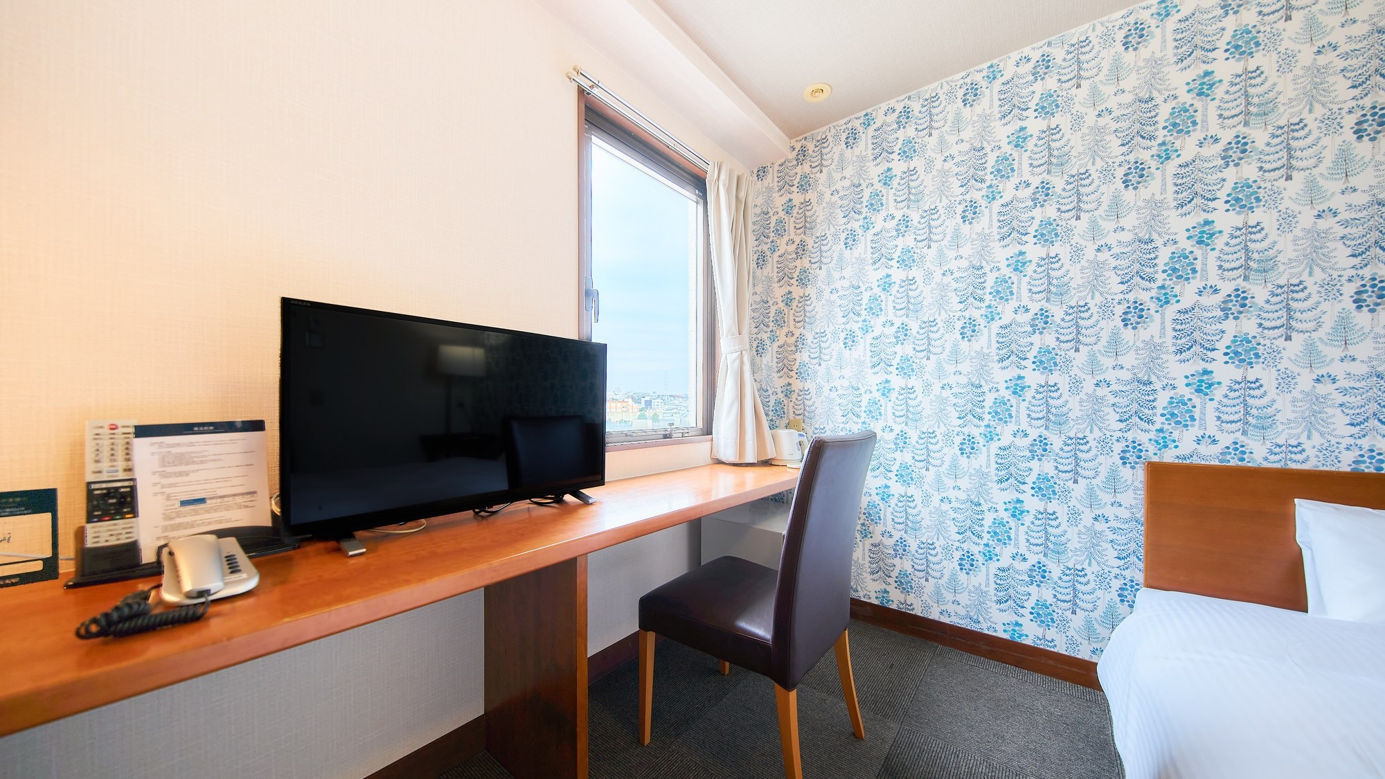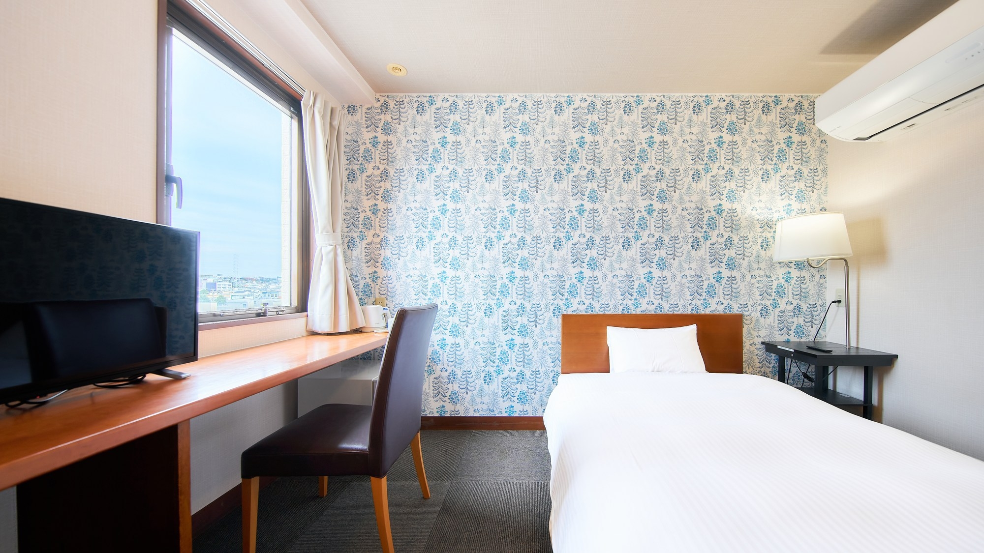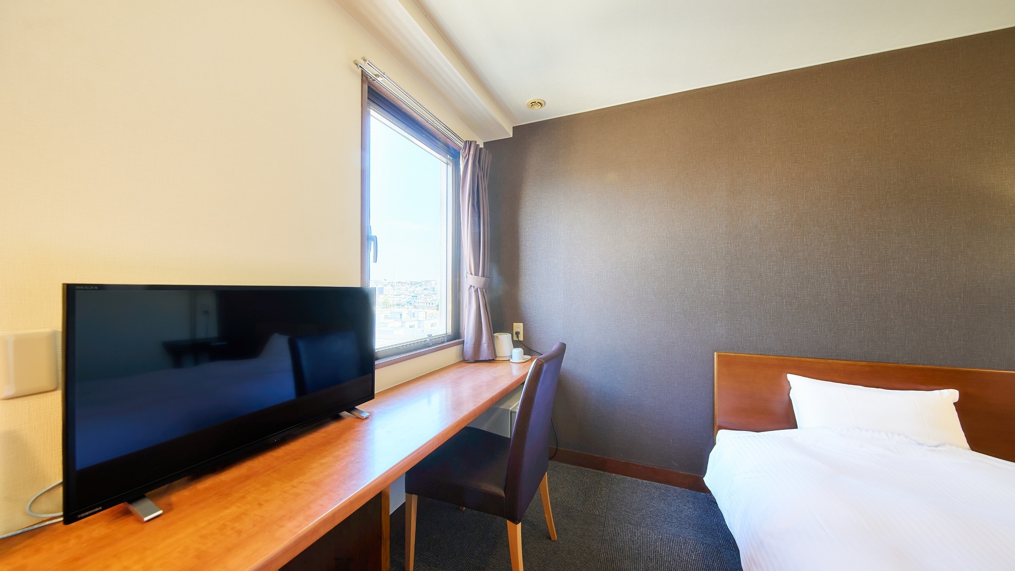 お一人様用、16平米〜のゆとりある広さの客室。フランスベッド社製のマットレスを導入し、皆様の快眠をサポートします。インターネットTVの視聴可能。子供添い寝1名可