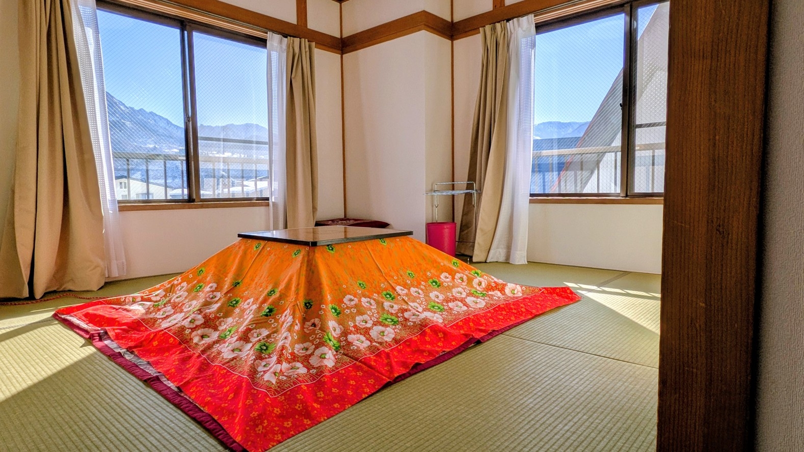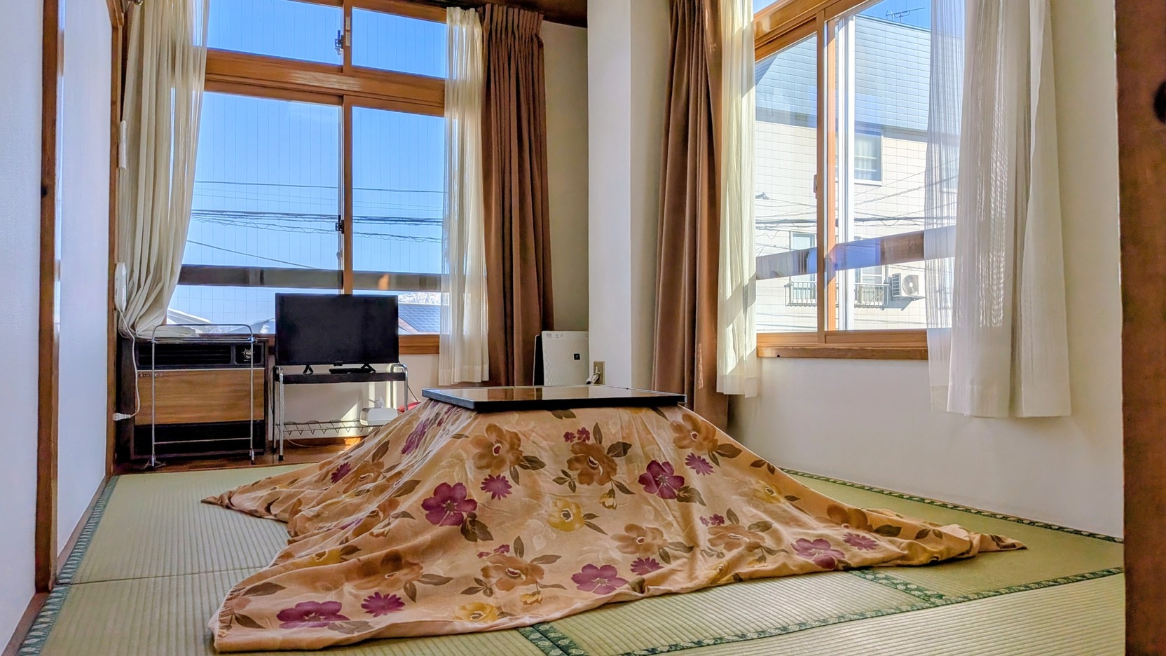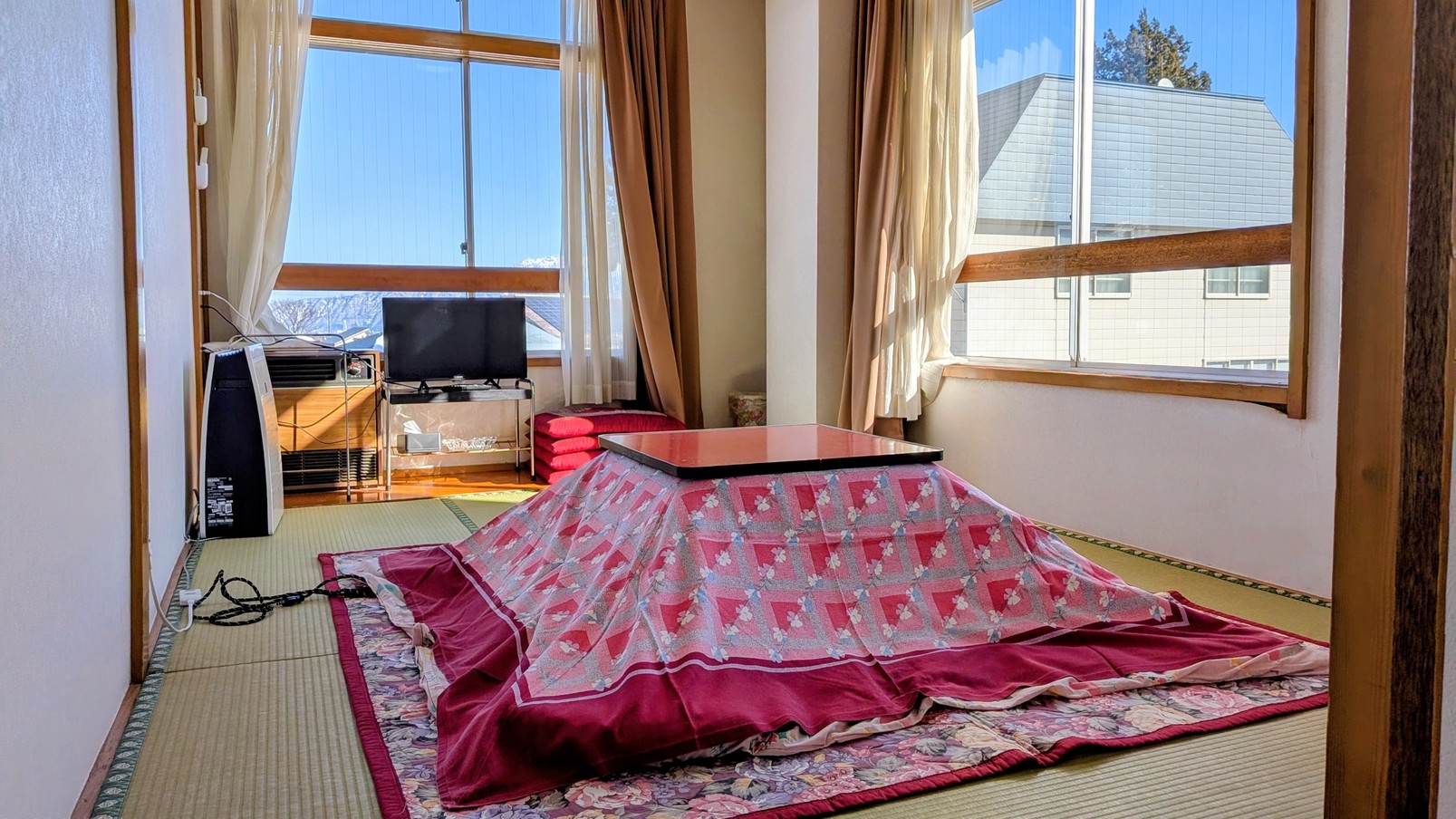 冬季シーズン中は、全室こたつ、全室禁煙です。和室の広さは人数と宿泊日数に応じて割り当てさせていただきます。繁忙期は2名様が2泊以上でも6畳になることもあります。