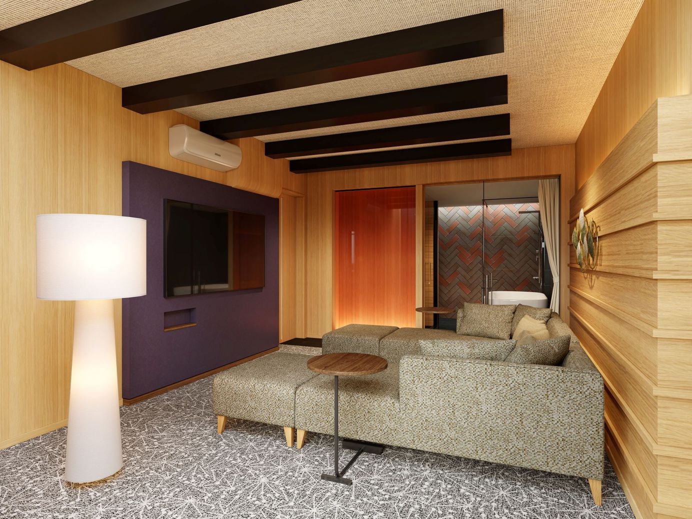 60平米を使った贅沢な空間【デラックススイート】“暮らすようなリゾート”を愉しめます。癒しを追求し、プライベートサウナ付きにリニューアル(2025年12月)