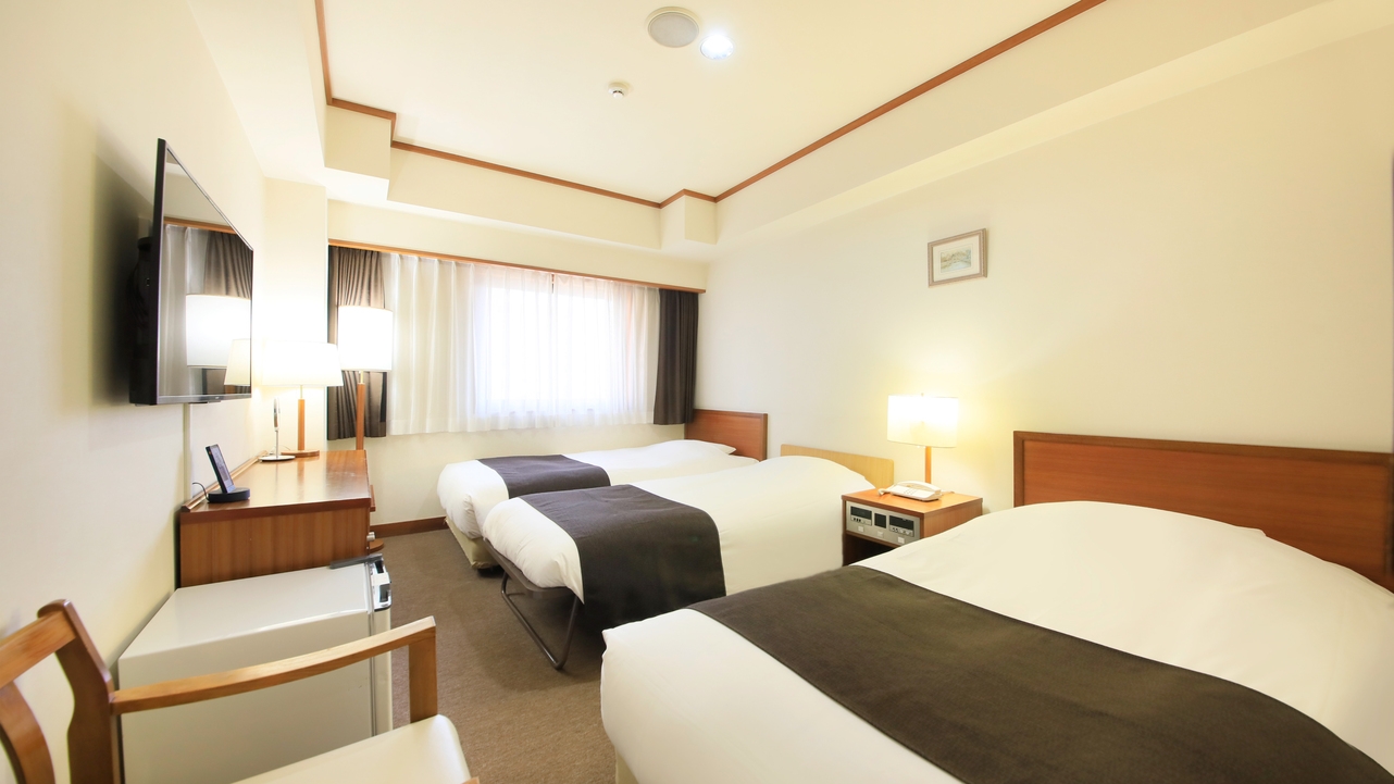 広さ:約22m2|ベッド幅:110cm幅ベッド×2台 & 90cm幅エキストラベッド×1台(添寝不可)|定員:大人3人+お子様2名まで