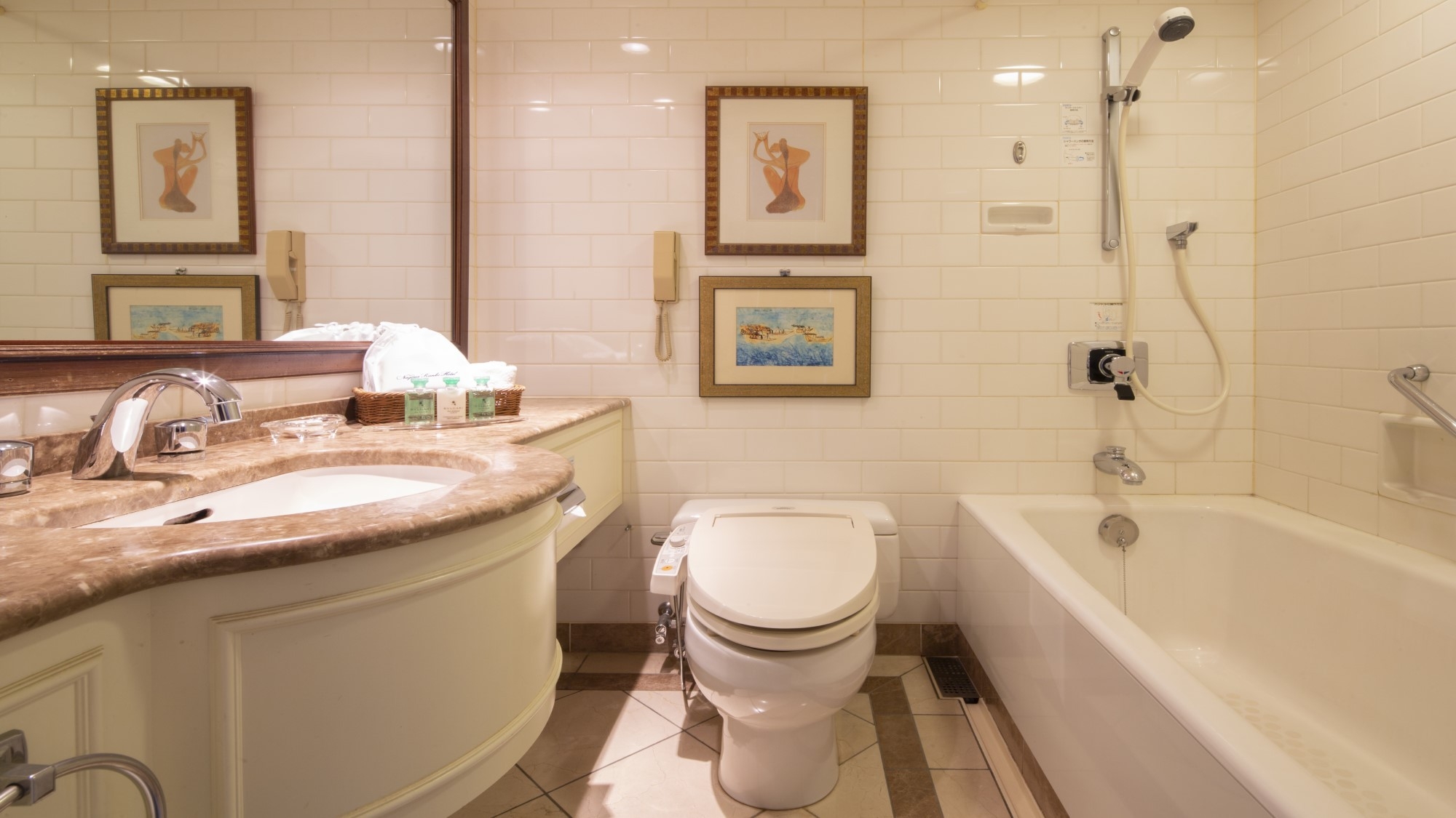 木目調の優しい風合いのインテリアをベースに、ユニットバスながら広々としたバスタブのバスルームをご用意。ファミリー・ご友人同士など幅広いシーンにおすすめです。
