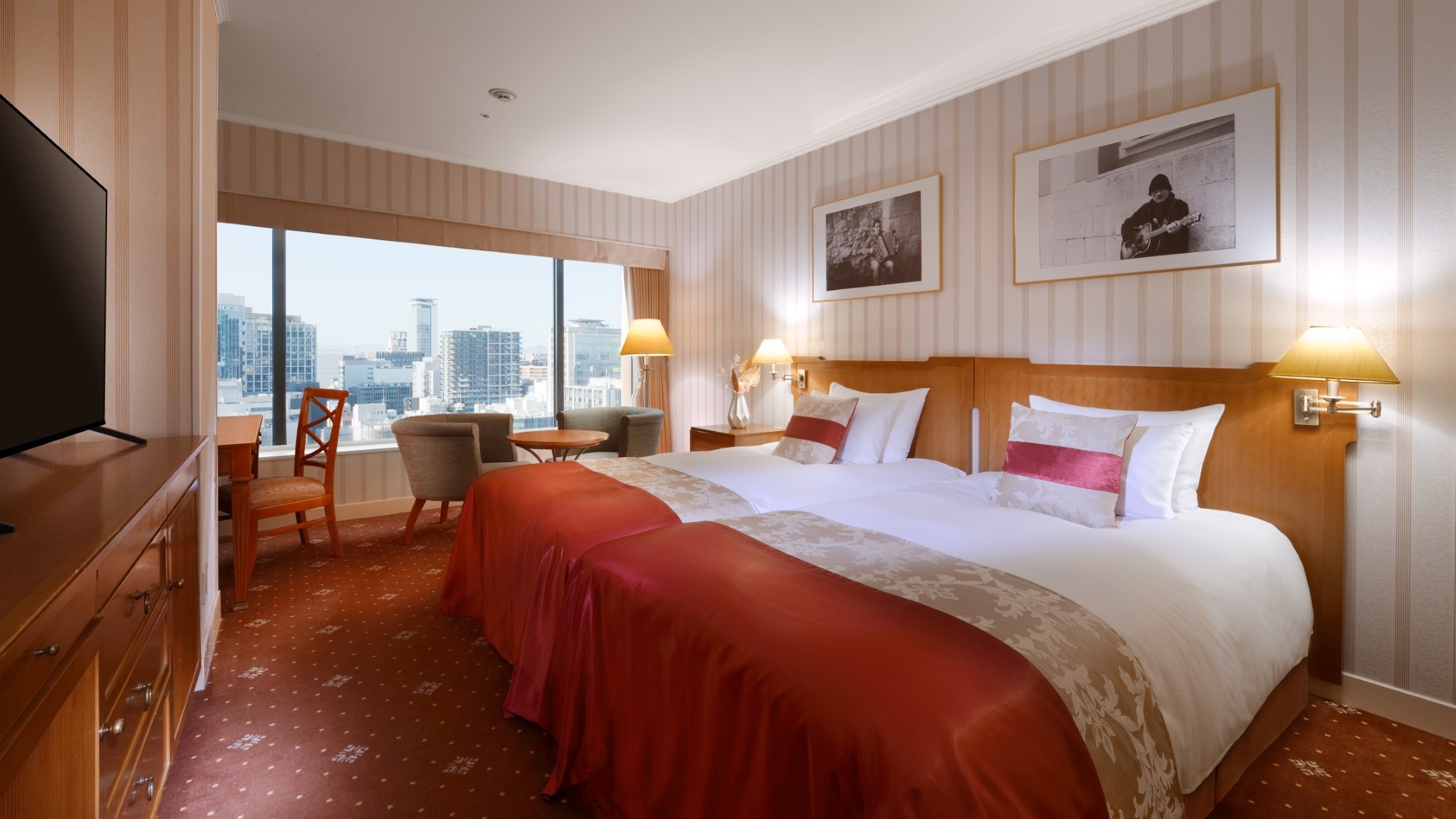 12階以上の上層階、ゆとりの空間・クイーンサイズベッド(160cm幅)は上質かつ優雅なひとときをお約束。ビジネスエグゼクティブ・記念日におすすめです。