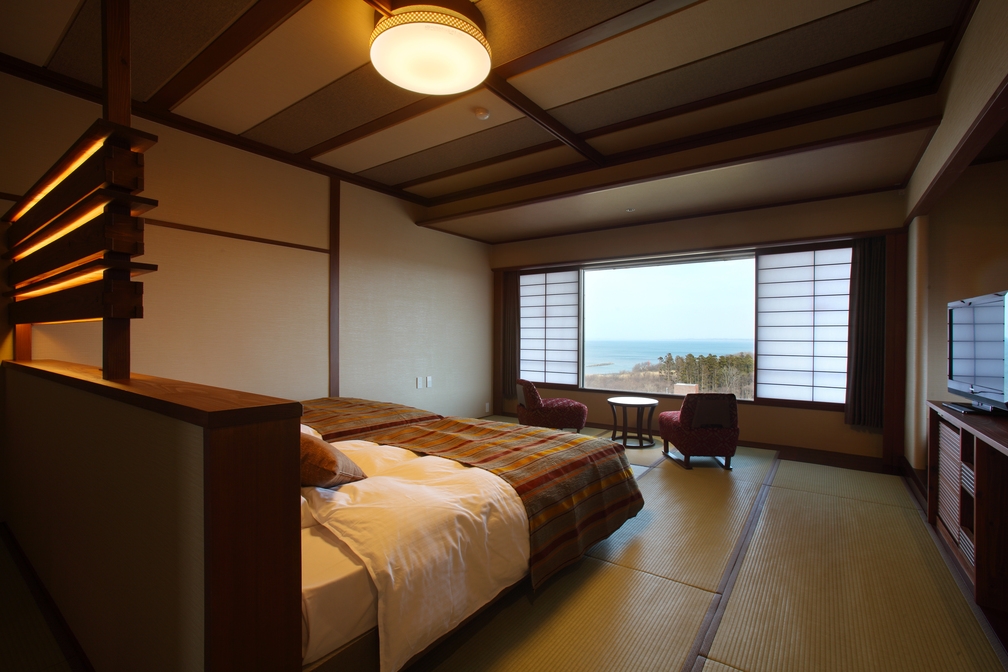 和室海側(禁煙) 落ち着いた、ゆったりとした和室で、男鹿の海を眺めながら、旅の疲れを癒します。