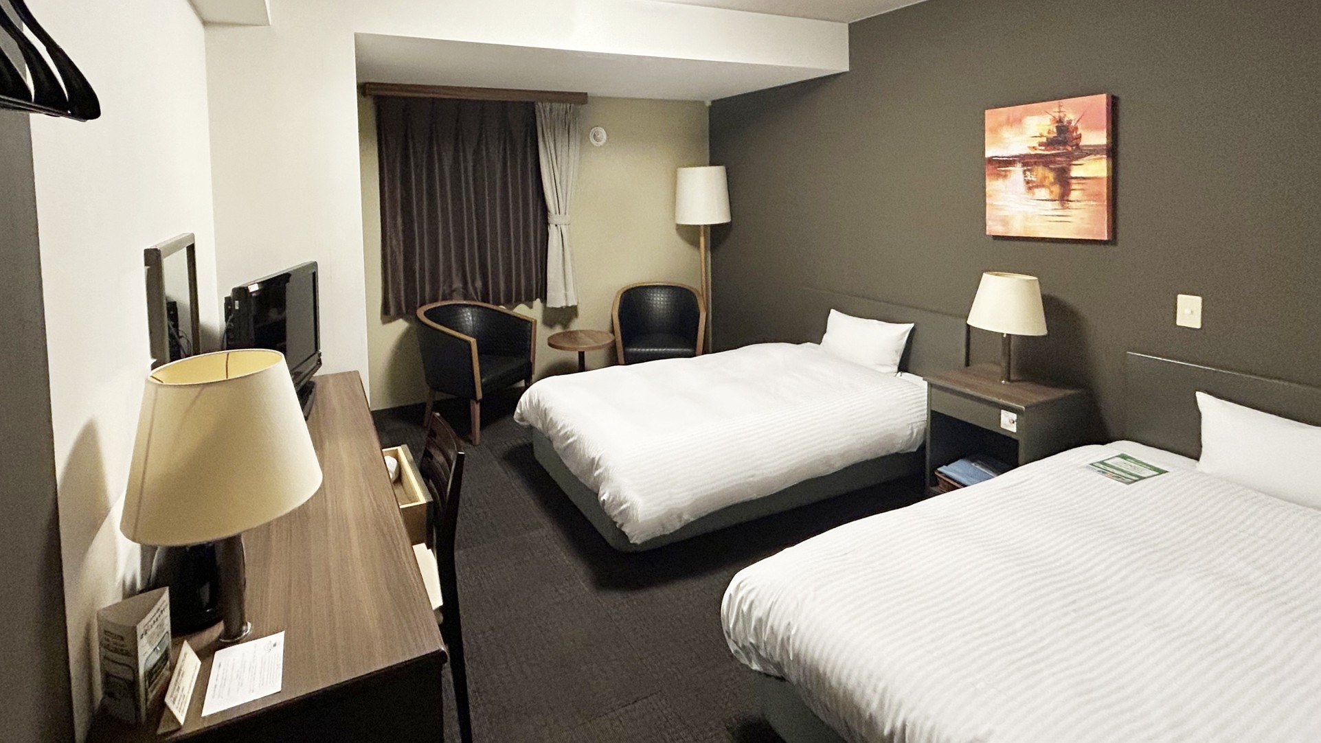 元がシングルルームですので若干の手狭さがございますのでご容赦くださいませ。