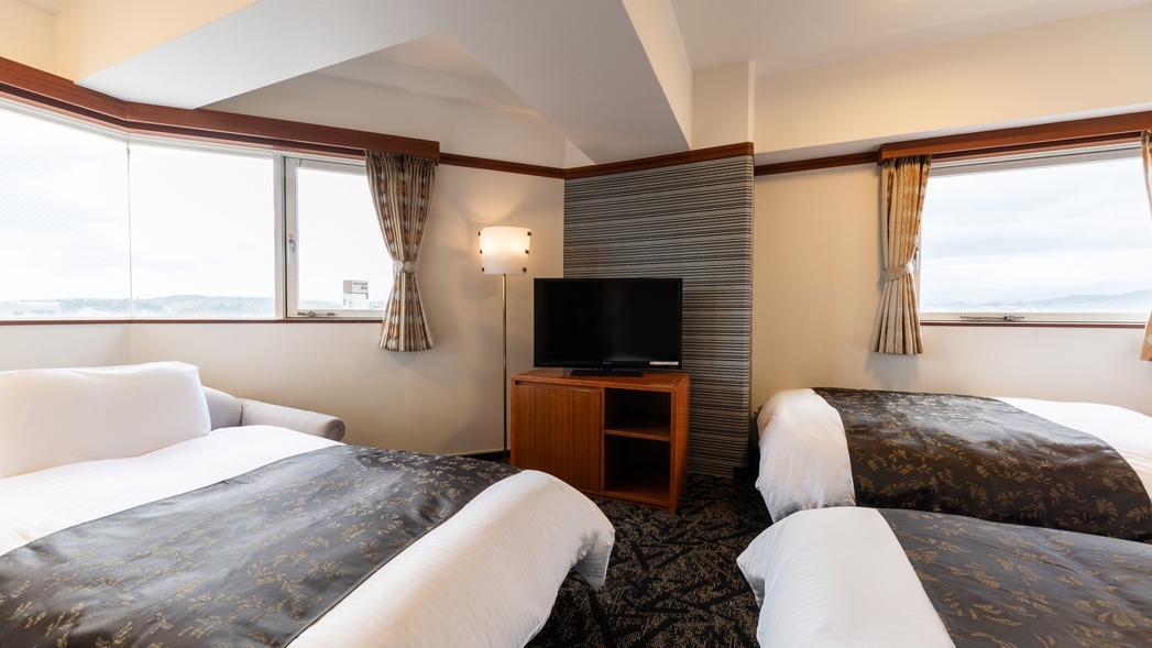 2ベッド+ソファベッドで3ベッドのトリプルルーム/ふんわりやわらか羽毛布団/全室Wi-Fi無料/ベッド幅:110cm×2台+エキストラベッド