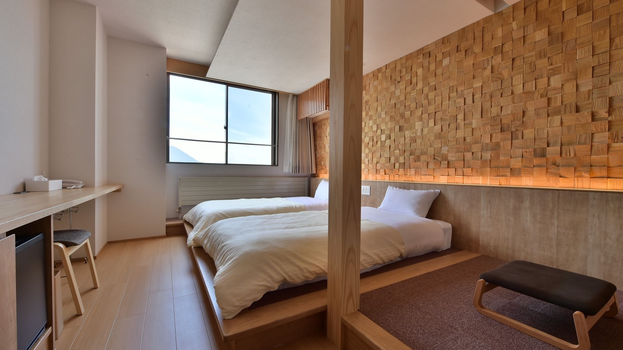 ツインルーム、バス・トイレ付のお部屋です。WifiOK。