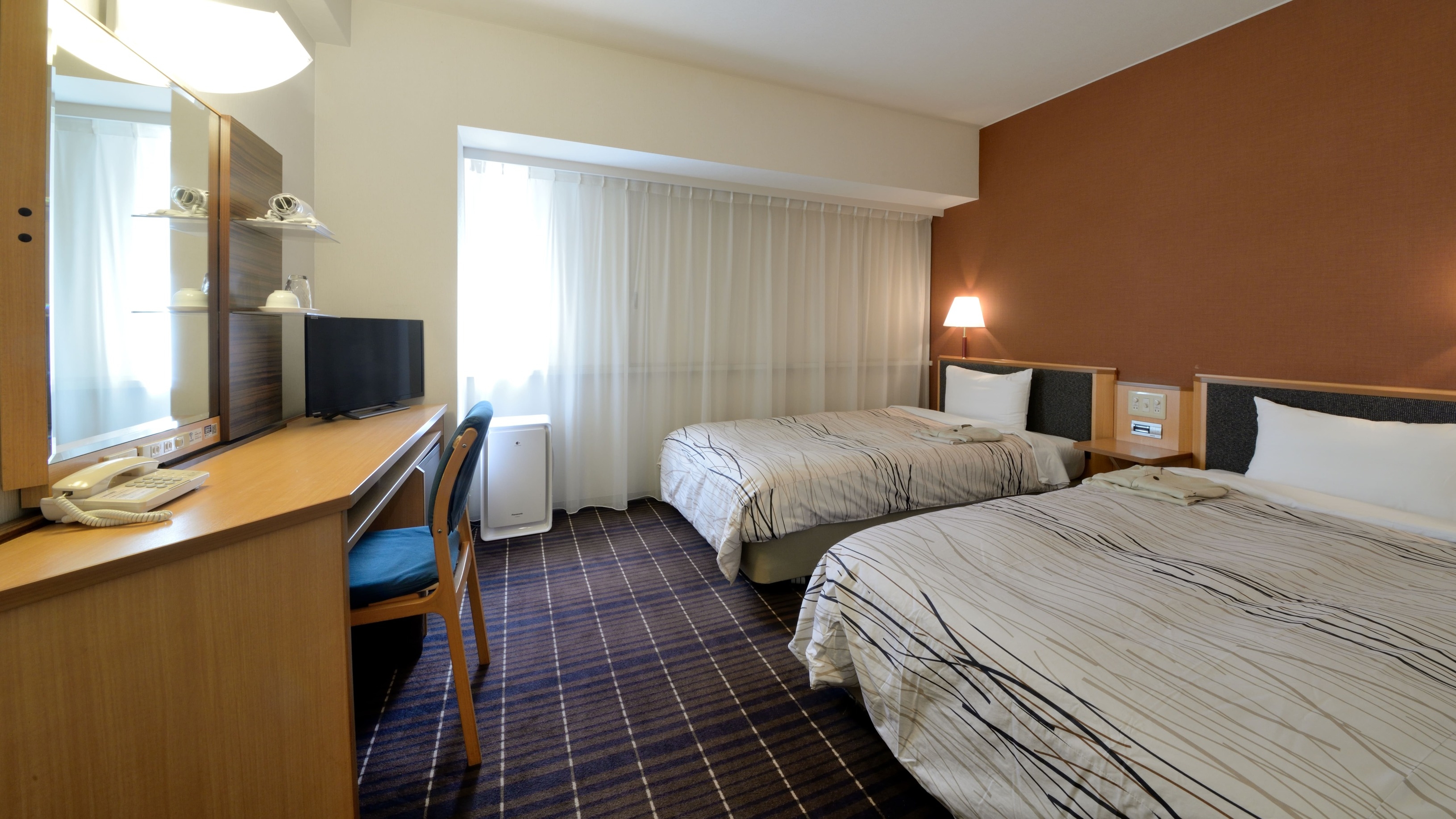 ※幅120cmベッド×2台をくっつけたお部屋(シモンズ社製) ■Wi-Fi・有線LAN ■スマートTV ■加湿機能付空気清浄機