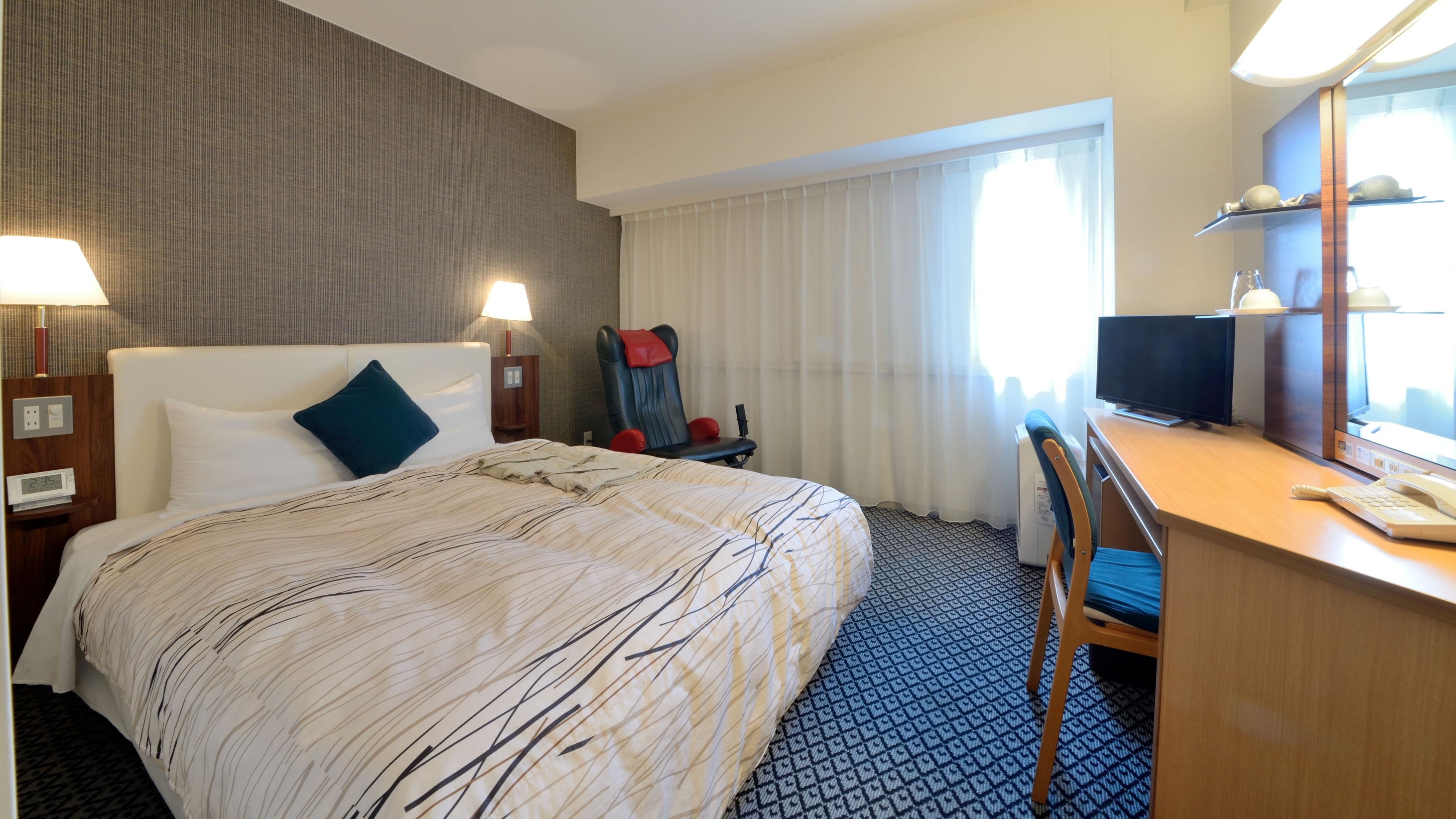 ■シモンズ社製ダブルベッド×1台 ■Wi-Fi・有線LAN ■スマートTV ■加湿機能付空気清浄機 ■選べる快眠枕貸出